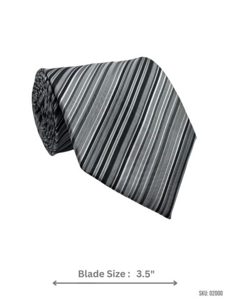 A stylish gray tie with textured silver stripes for a modern edge.
