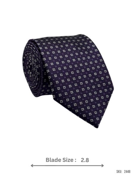 A deep purple tie with a square pattern, offering a sharp and professional look for formal or business attire.