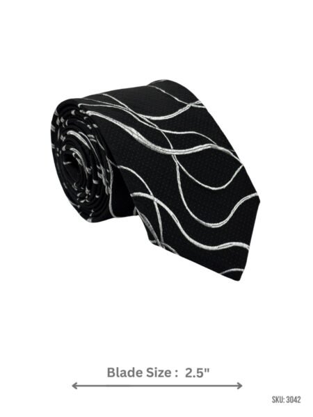 SKU: 3042Brand: MatexBlack Tie with Silver Abstract Wave Pattern ₨ 1,499