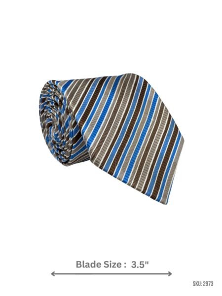 SKU: 02973Brand: PortiaRoyal Blue, Light Blue, White & Brown Striped Tie ₨ 1,499