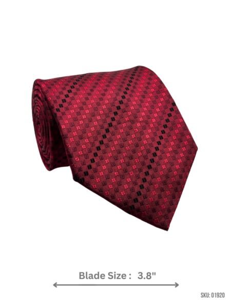 Make a statement with this red tie featuring a bold black checkered pattern. A 3.8″ blade for timeless style.