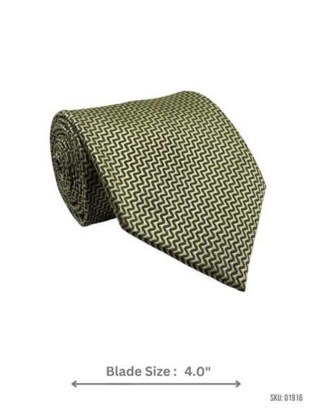 Add a fresh twist to your look with this green tie featuring a bold zigzag design. The 4.0″ blade ensures a classic and elegant style.