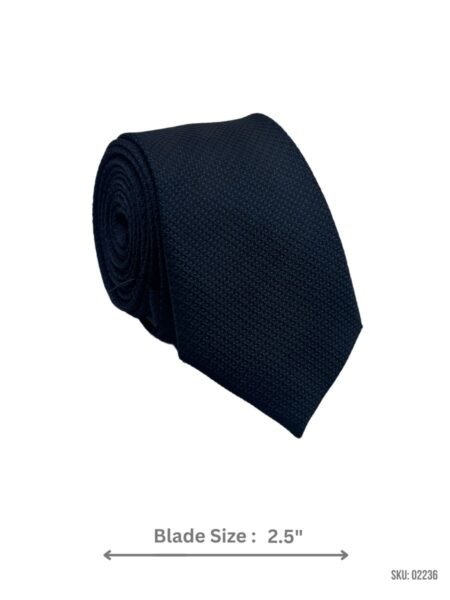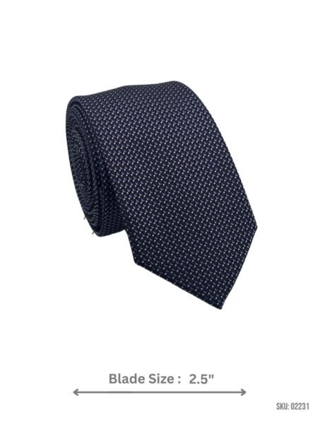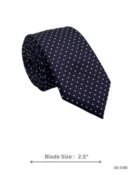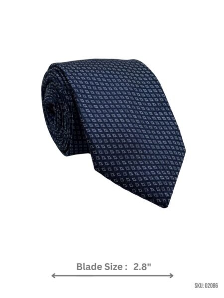 Modern navy blue tie with a subtle diamond pattern. Slim 2.8″ blade width for a sleek, contemporary look.