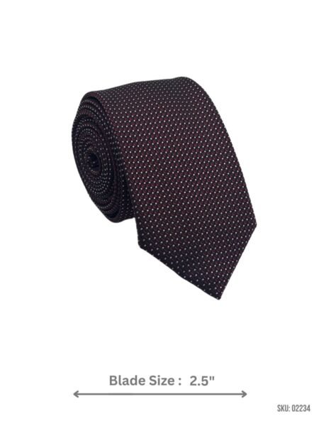 A burgundy tie with a white dot pattern. Ideal for business and formal occasions.