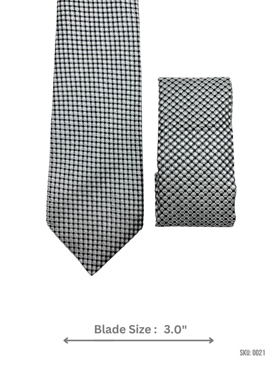 Stand out with this black and white checkered pattern tie and matching pocket square. Featuring a 3.0″ blade width, it’s perfect for weddings, business meetings, and formal events.