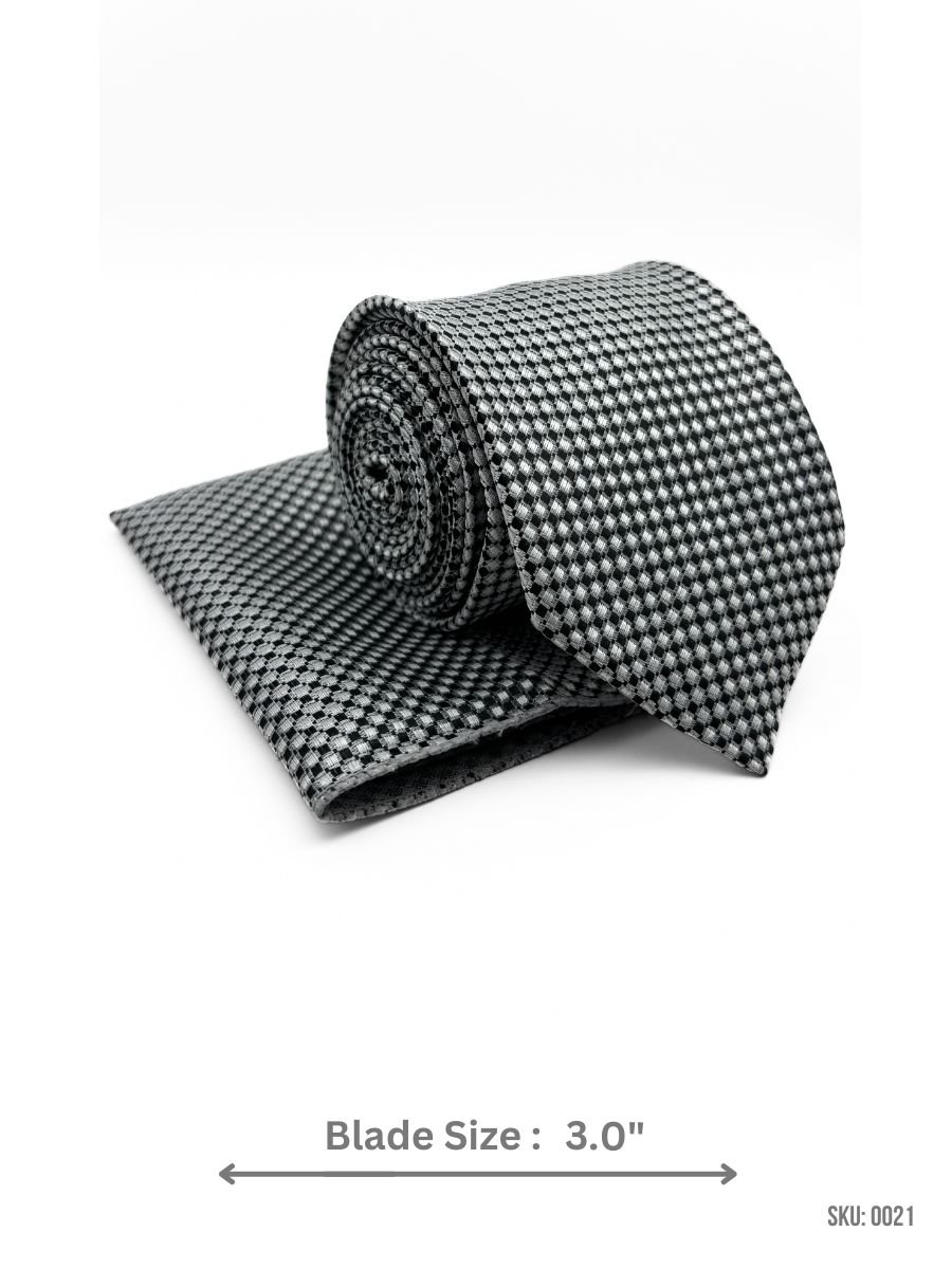 This black and white checkered tie with a matching pocket square brings a classic yet modern style to your wardrobe. Featuring a 3.0″ blade width, this set is ideal for formal events, business meetings, and weddings. The bold black and white checkered design adds a touch of sophistication, making it a versatile accessory for any formal or professional look. Whether you’re attending a wedding or a business meeting, this tie and pocket square set ensures you look polished and stylish.