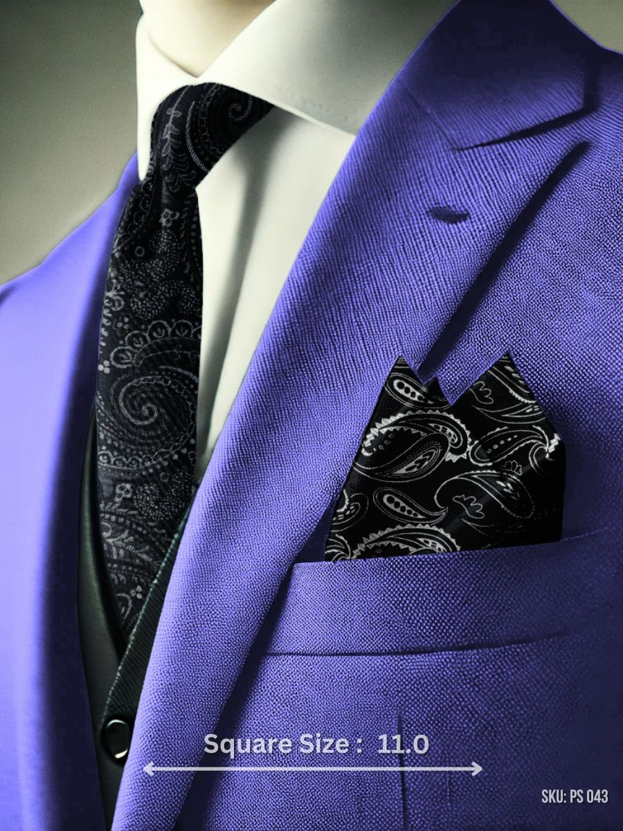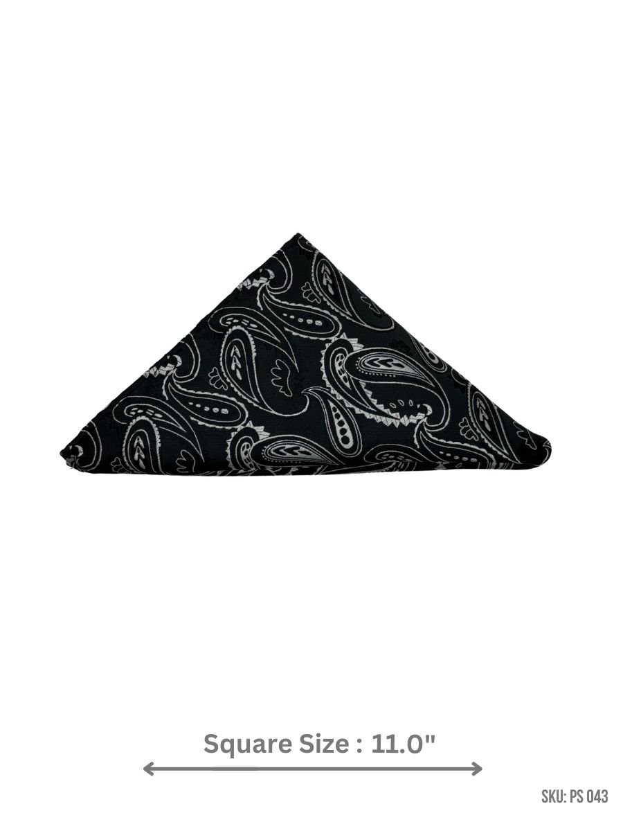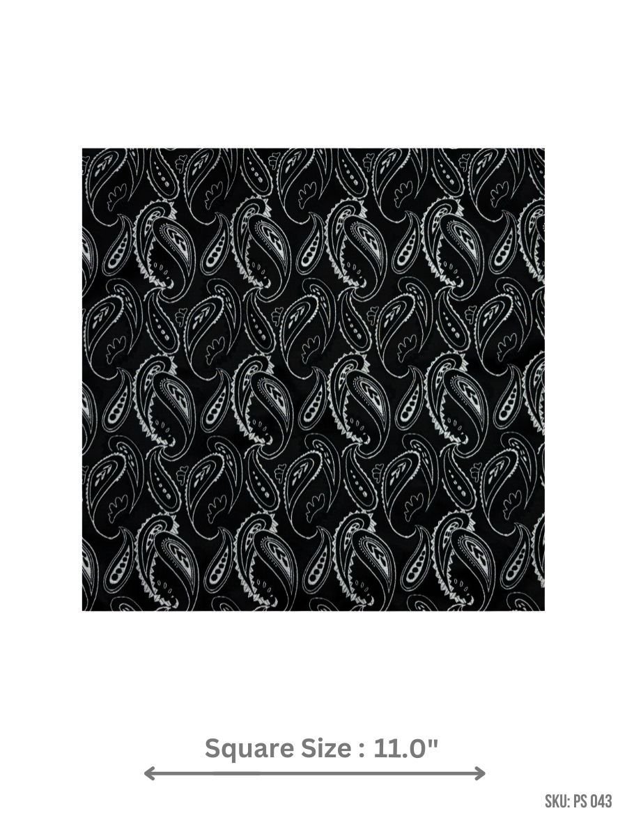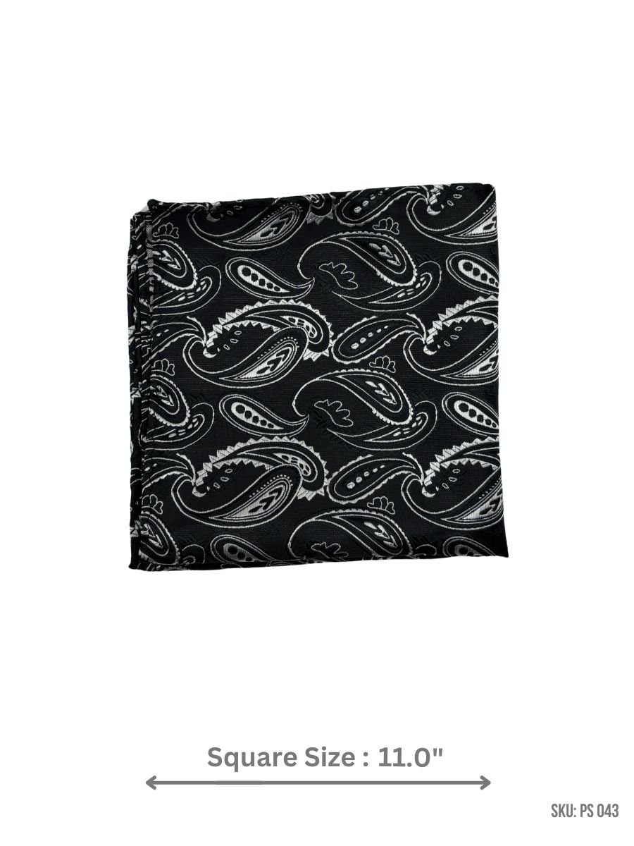 Featuring a striking paisley pattern in black and white, this pocket square brings a touch of sophisticated charm to your ensemble. The contrast of deep black and crisp white creates a visually appealing design that complements any suit or blazer. Crafted with high-quality fabric, this pocket square offers a polished finish for any formal occasion.