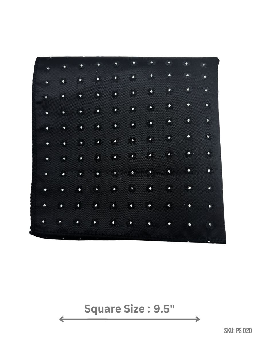 Complete your formal look with this black pocket square featuring elegant silver polka dots. Its understated yet stylish design makes it suitable for weddings, galas, and professional settings. Crafted with premium-quality fabric for durability and ease of use.