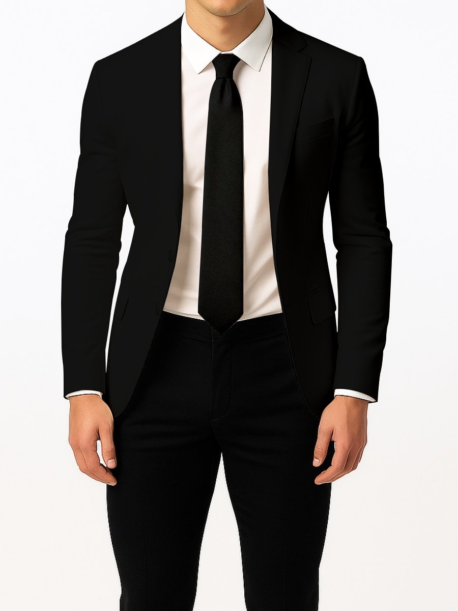 This classic black tie with a subtle textured pattern is perfect for formal events, business meetings, or any occasion where sophistication is key.