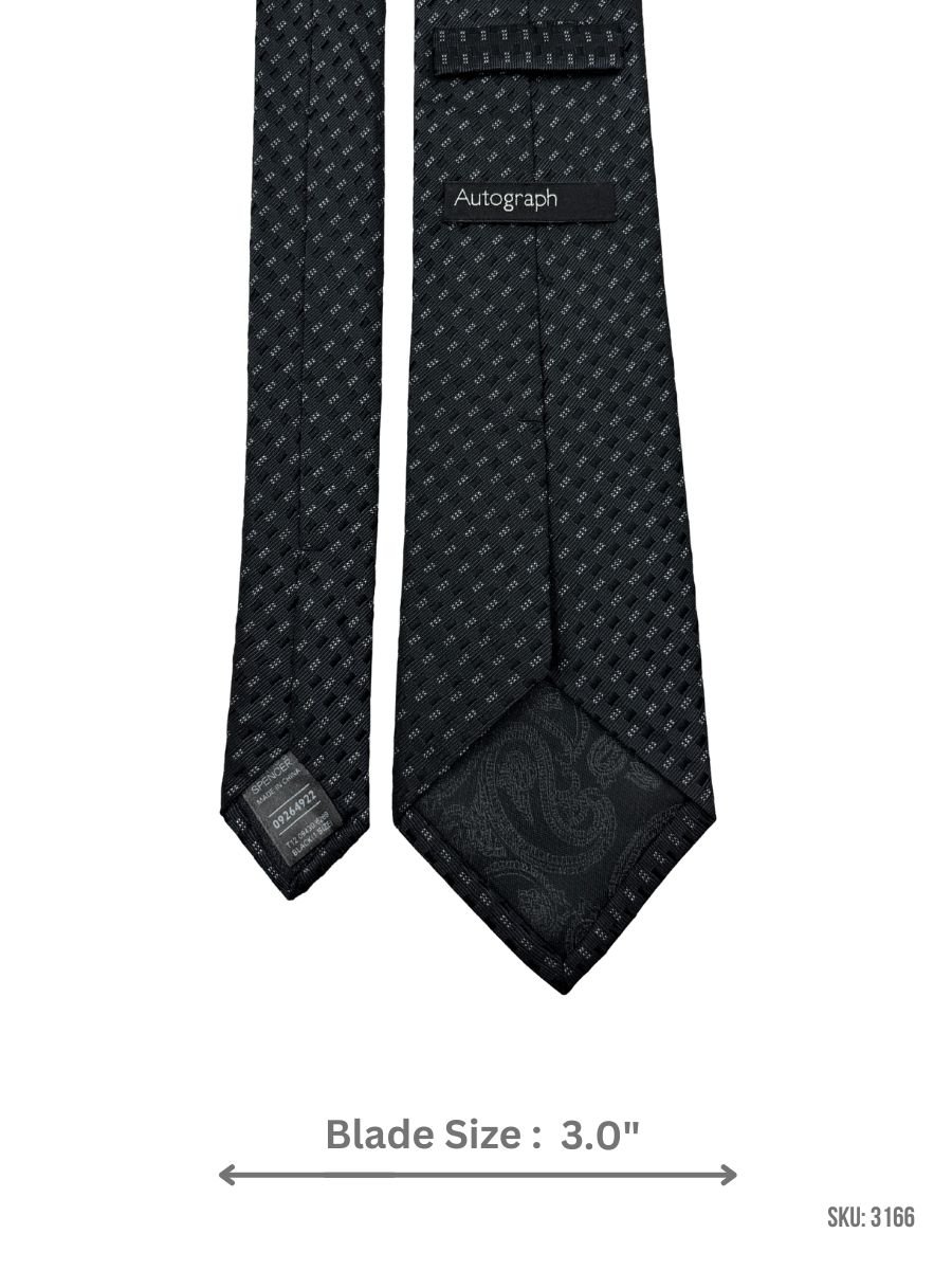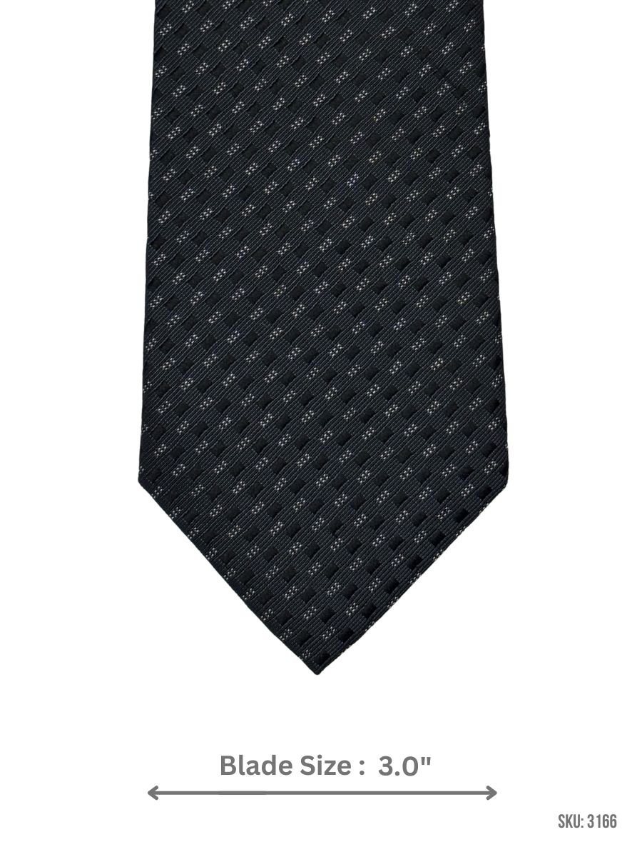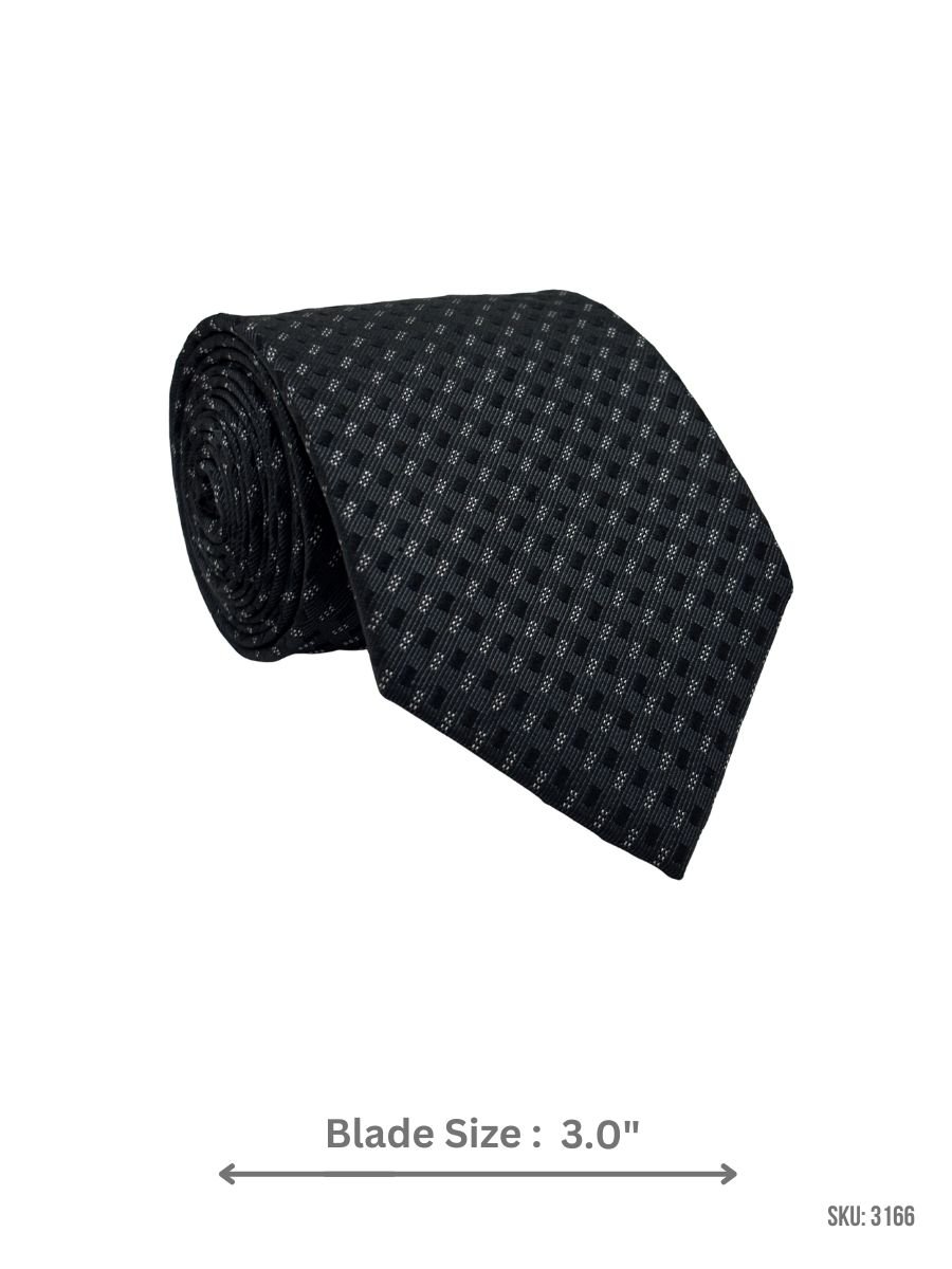 A refined black tie with a subtle charcoal gray diagonal micro-grid texture that adds depth without overpowering your look. Great for office wear, meetings, and formal events