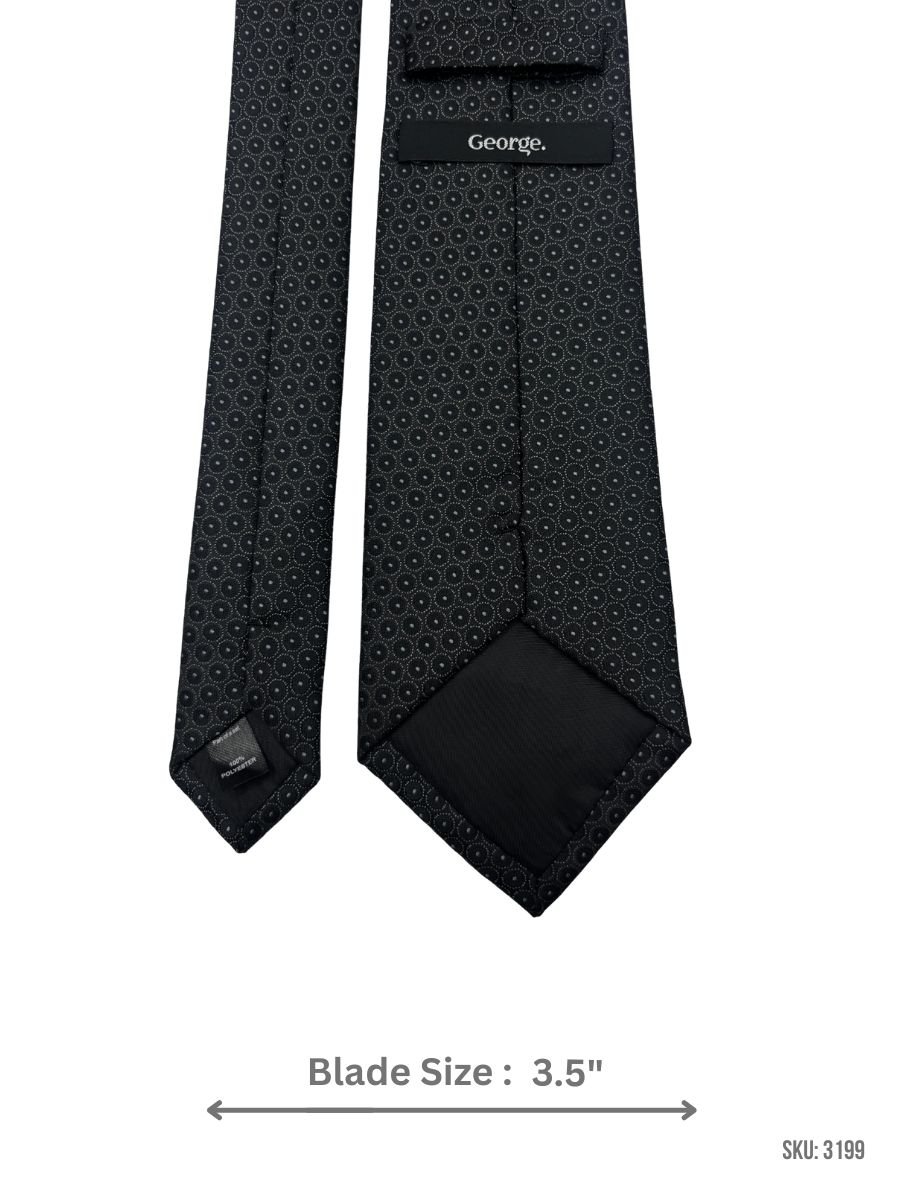 Black Tie with Light Gray Circular Dot Ring Pattern