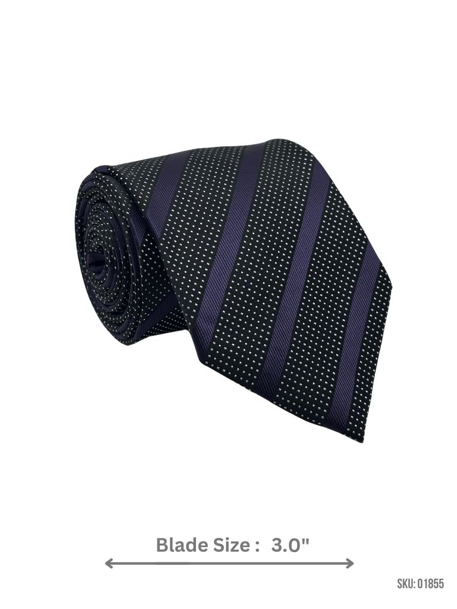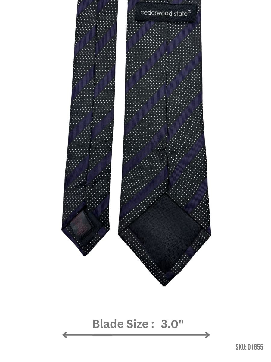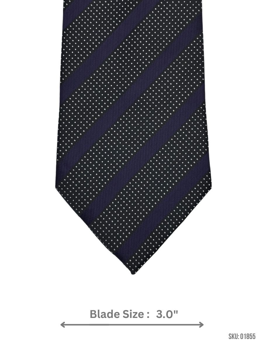 Black Tie with Polka Dot and Navy Stripe Pattern