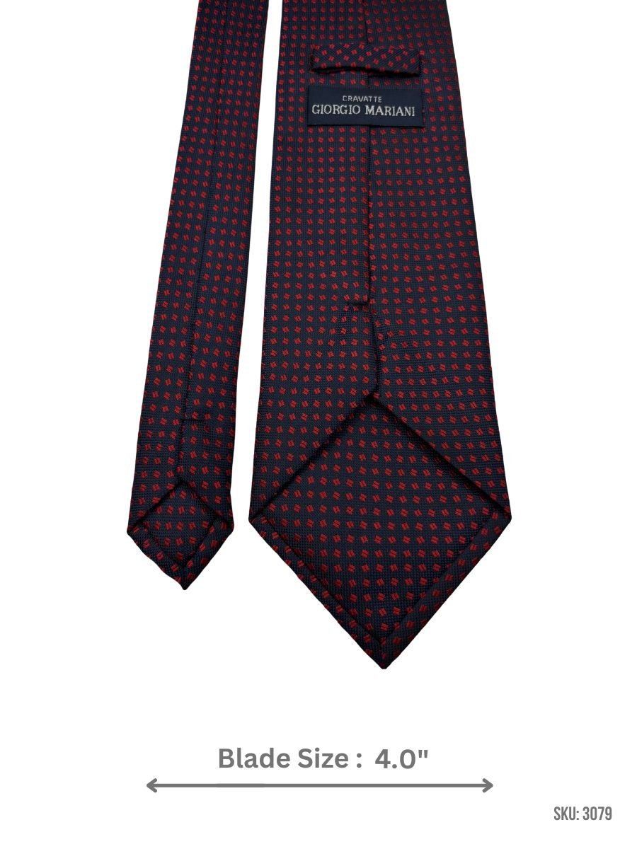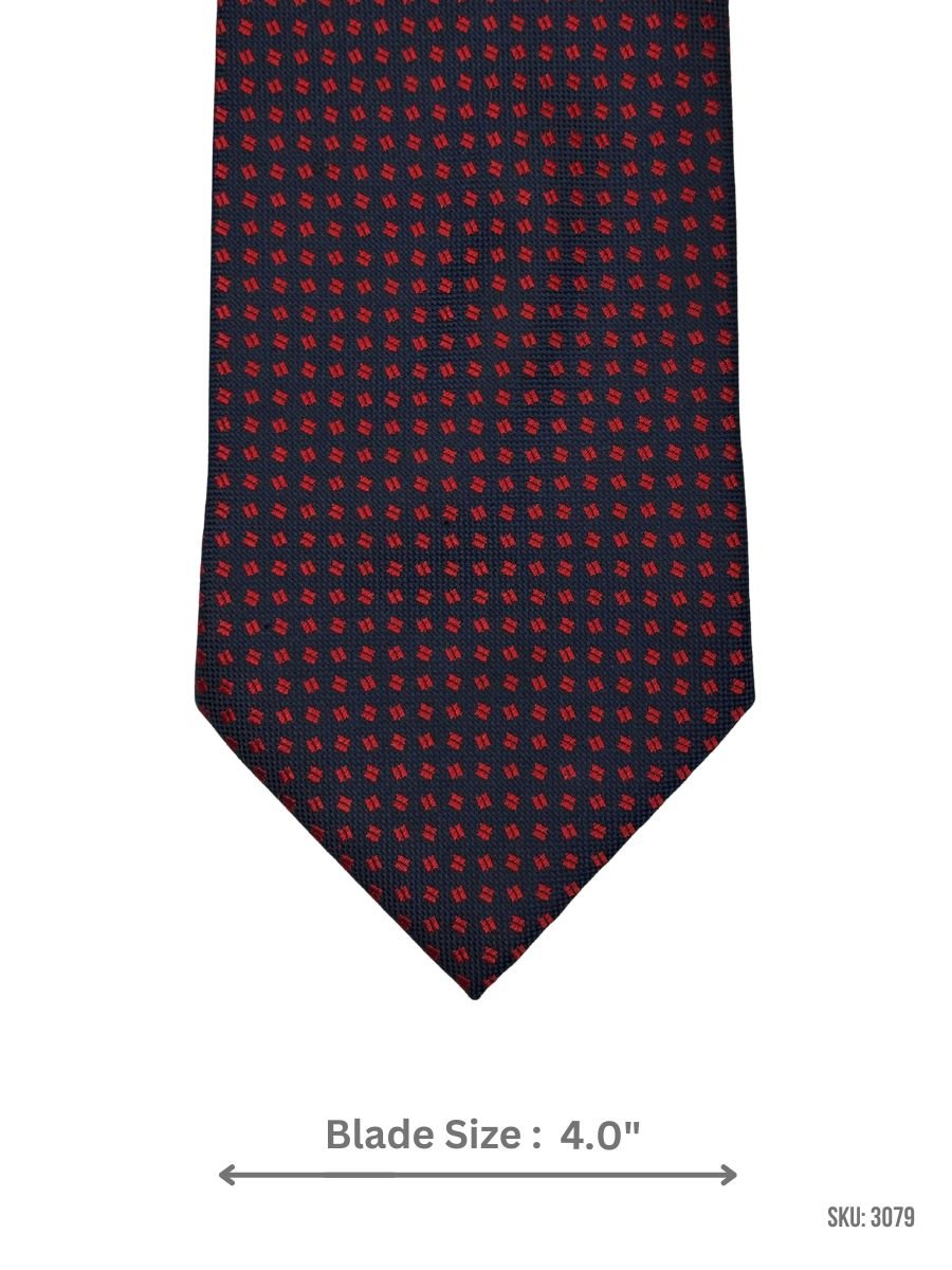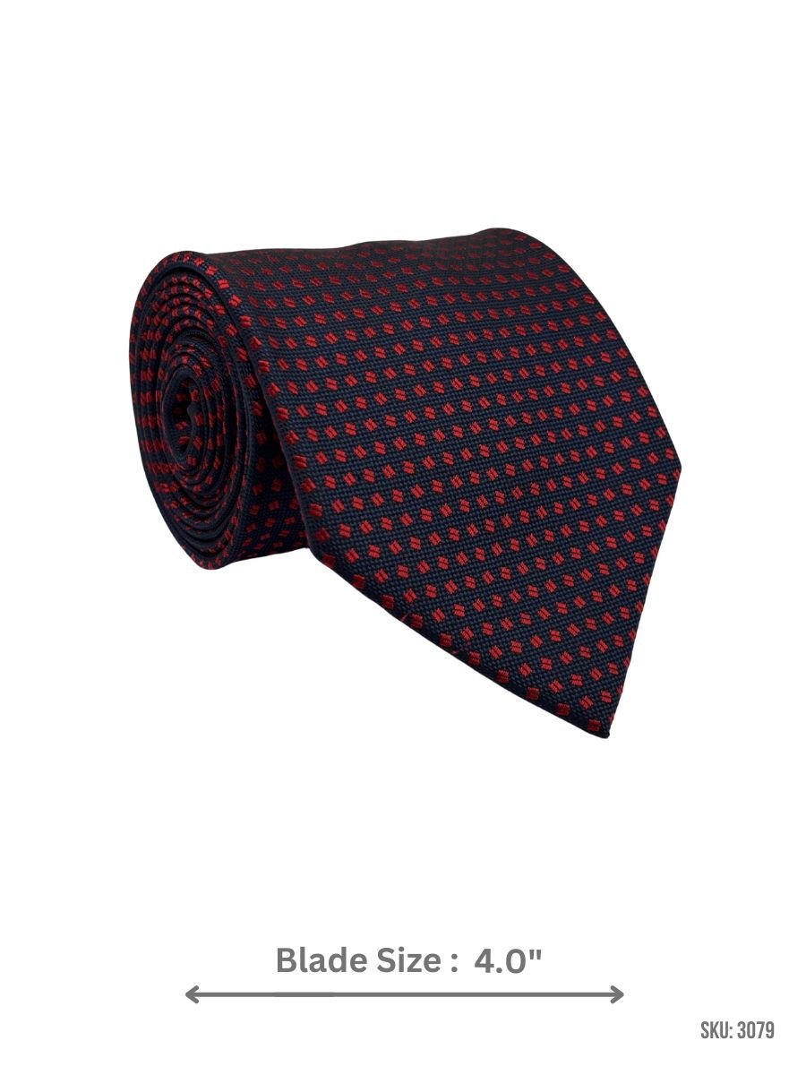 This black tie is finished with an all-over red micro geometric motif that adds texture and personality while staying formal. The high-contrast pattern works great for evening events and standout office outfits—pair it with solid shirts and dark tailoring to keep the look polished and modern.