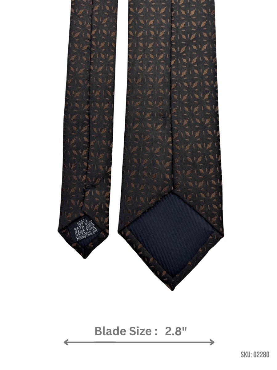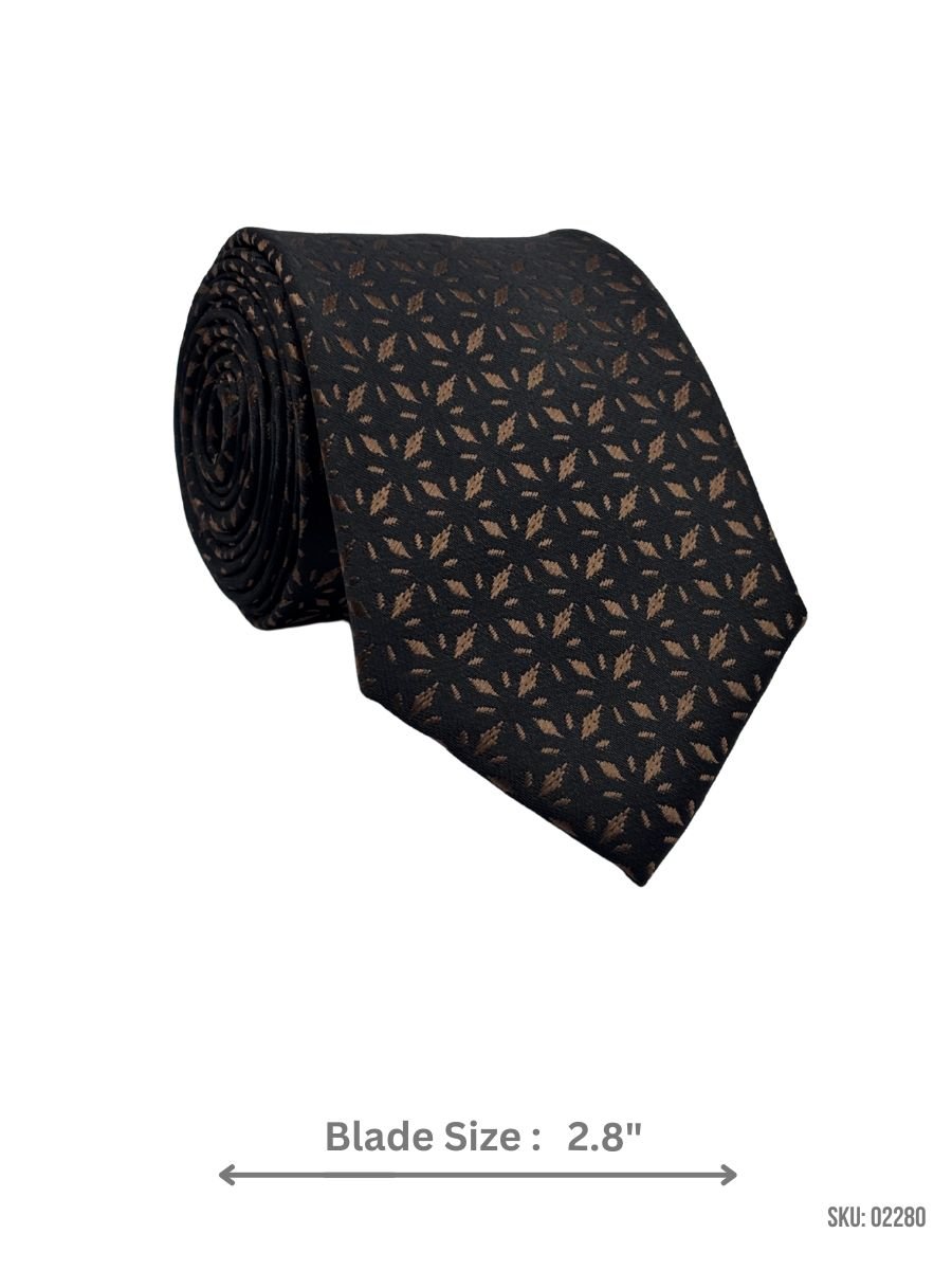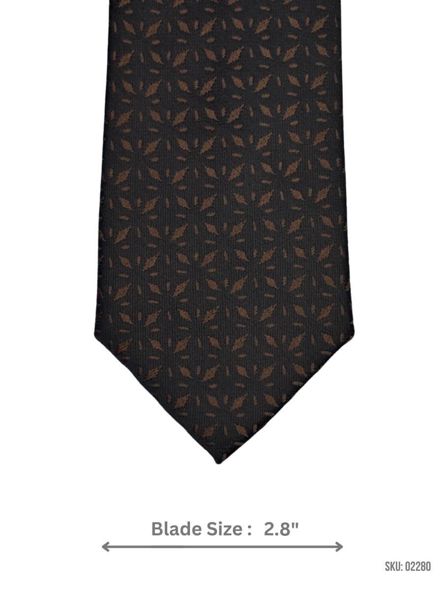 Add texture and elegance to your outfit with this Black Tie featuring a subtle brown leaf print. Ideal for evening wear or unique professional styling, the 2.8-inch width offers a sleek profile suitable for tailored suits.