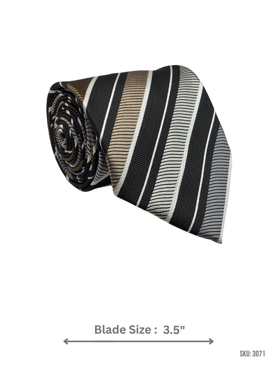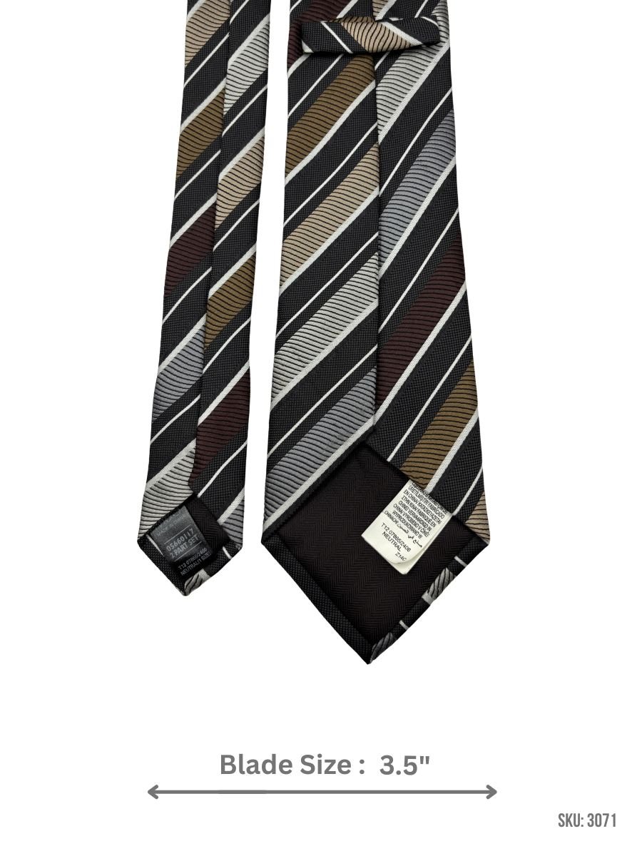 Black Tie with Tan, Light Grey & White Diagonal Stripes