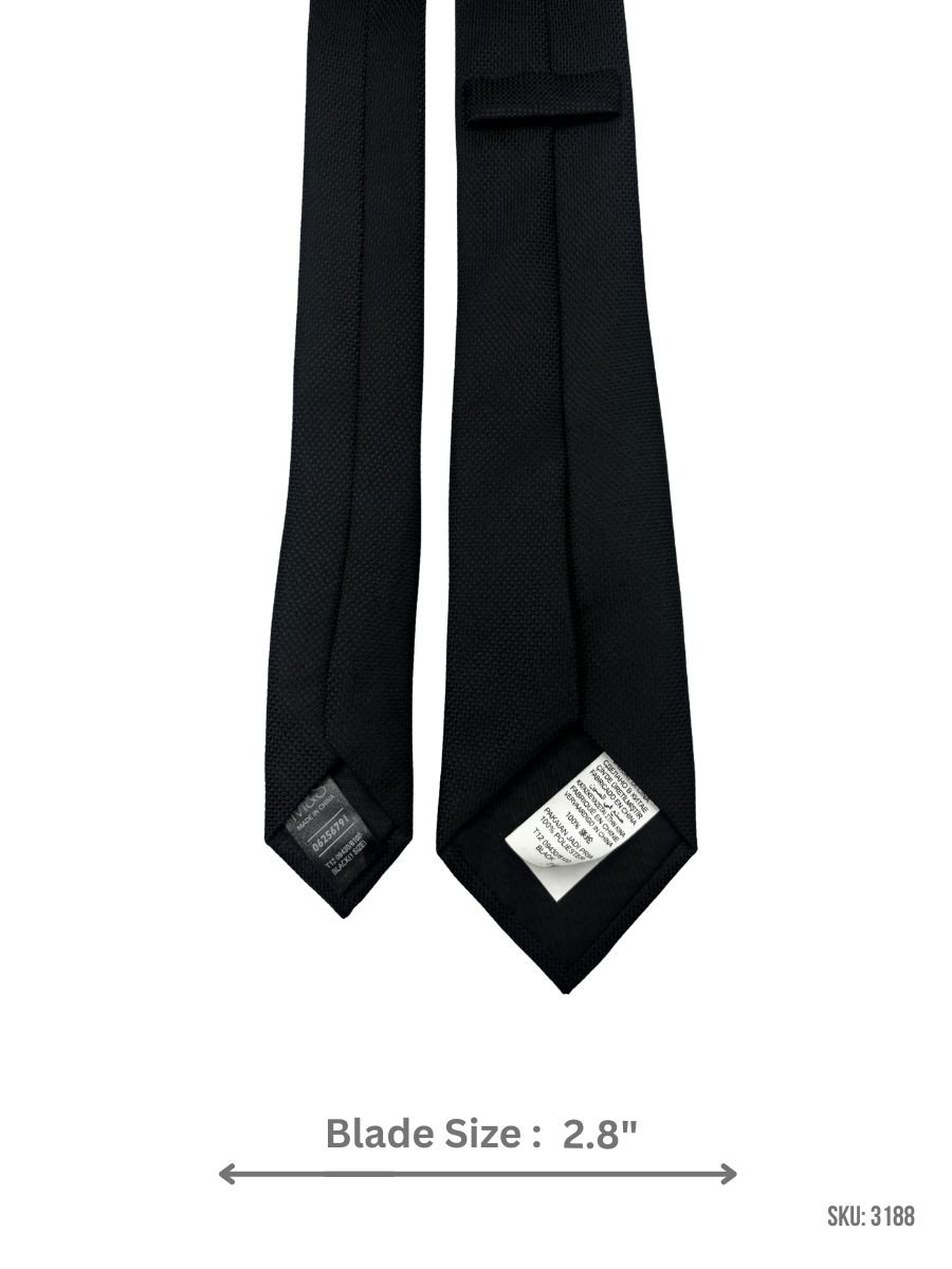 Solid black tie with a subtle tonal micro-texture for a clean, modern finish.