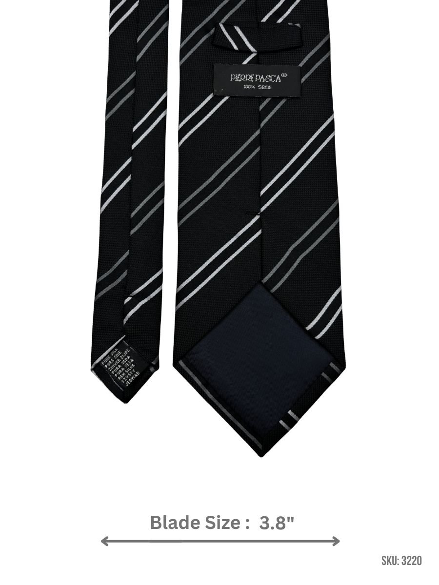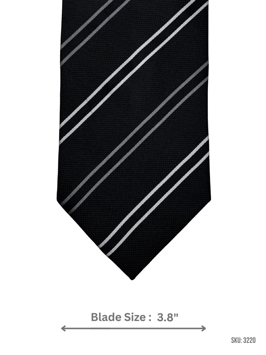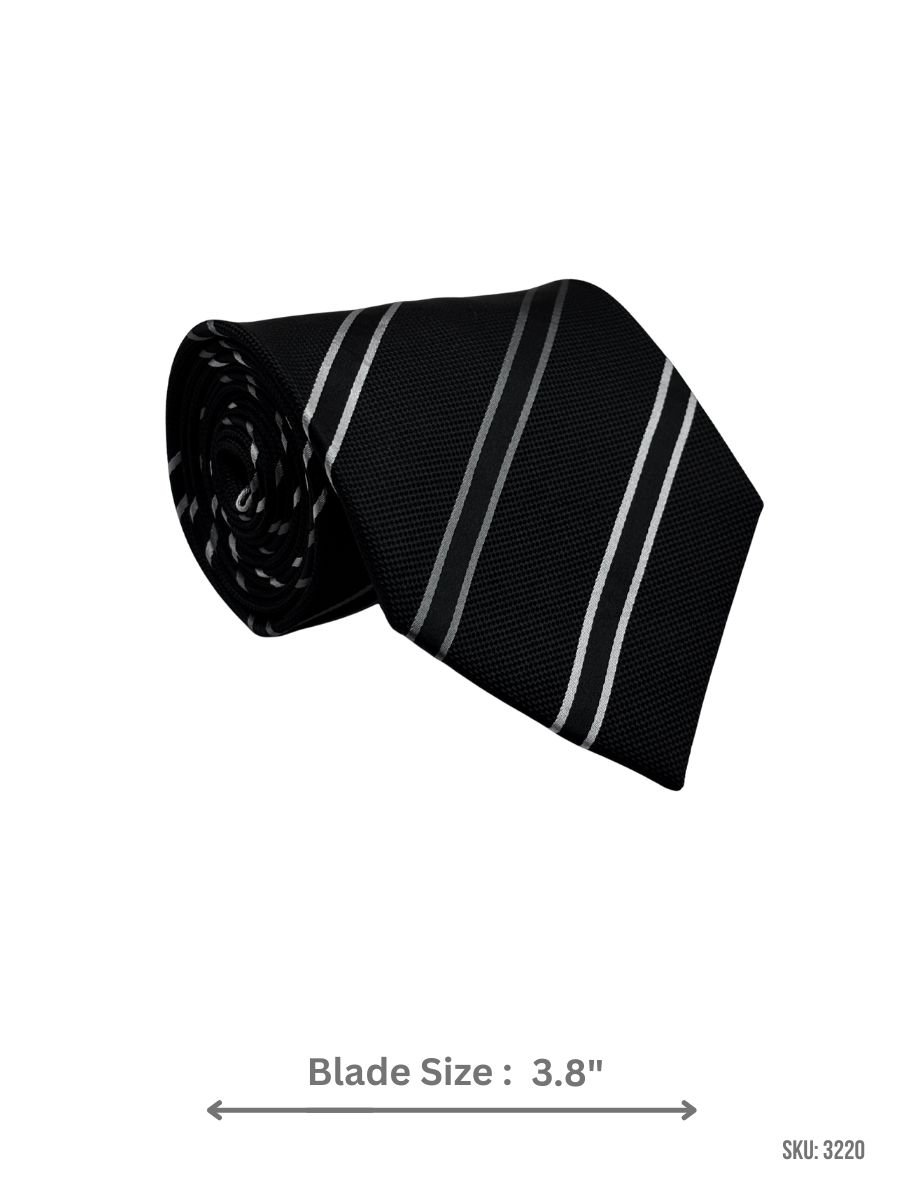 Black Tie with White and Gray Diagonal Stripe Pattern