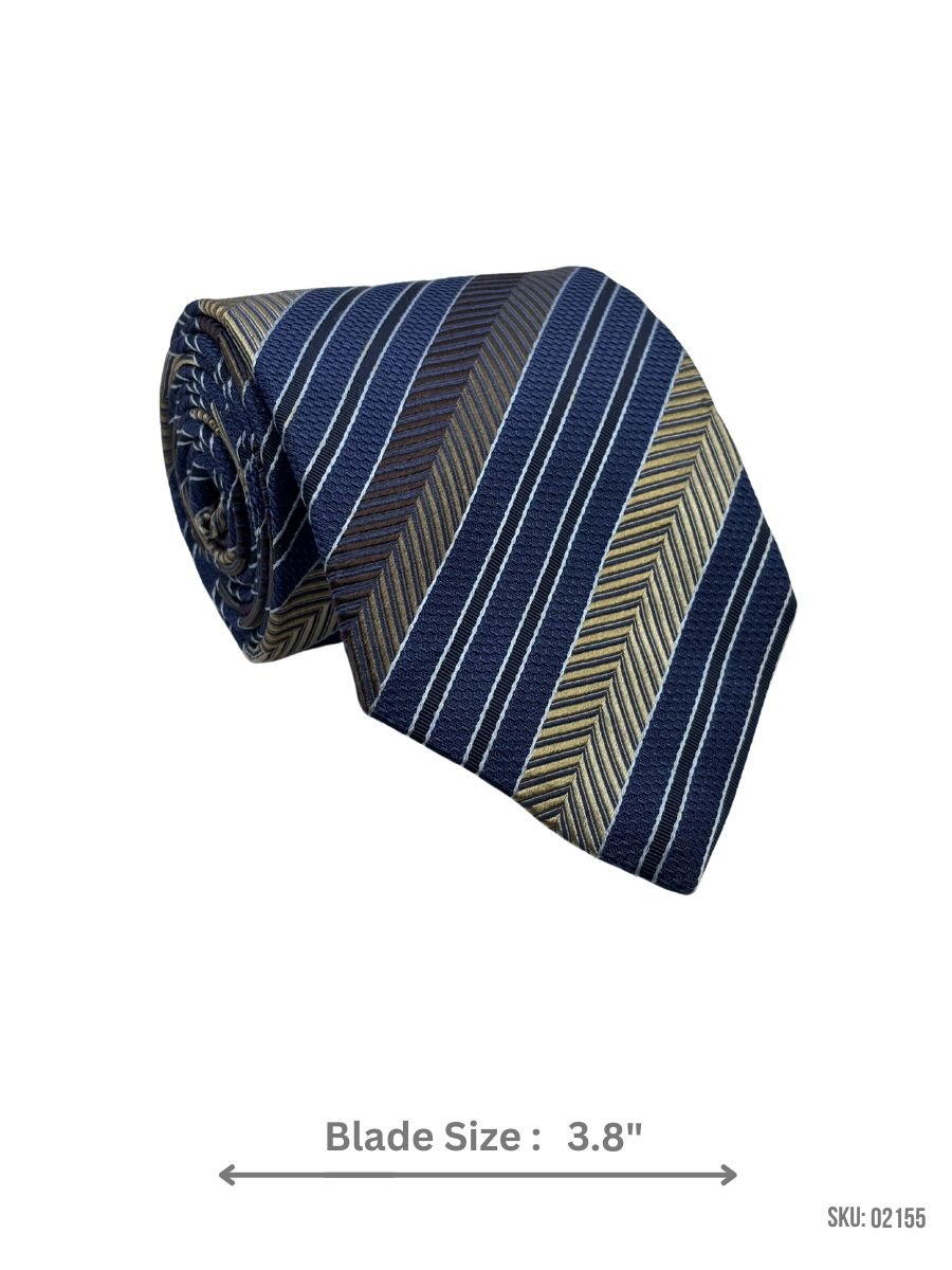 This blue and gold striped tie is a bold choice for any occasion. The 3.8-inch blade width gives it a contemporary and sharp appearance. Whether you’re attending a business event, wedding, or formal gathering, this tie adds a touch of sophistication and style to your outfit.