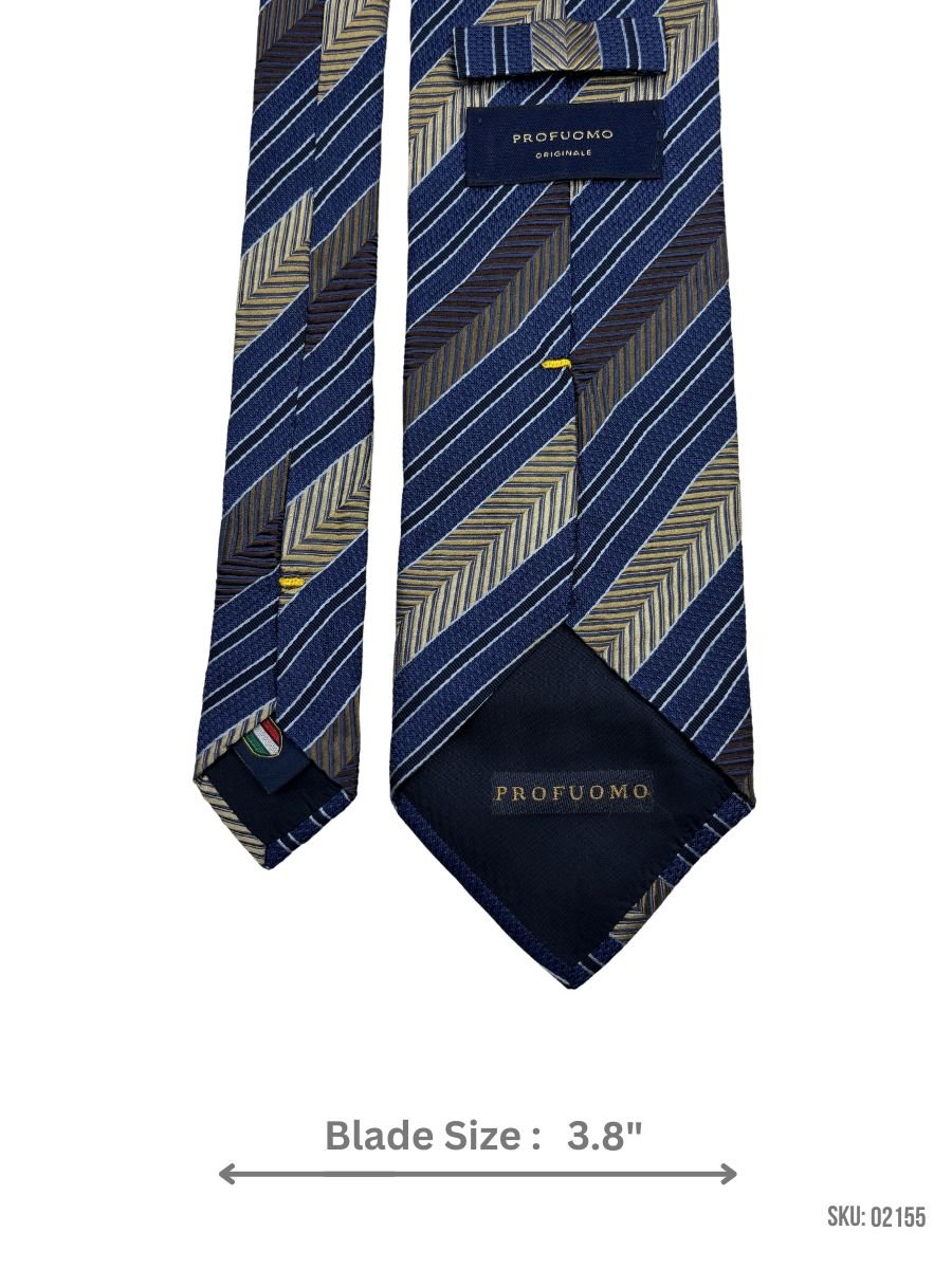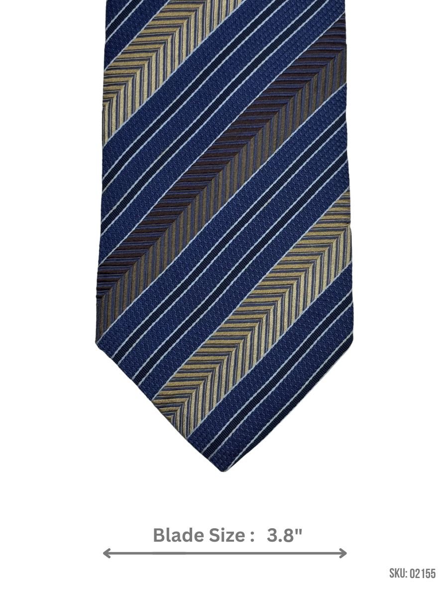 A striking blue and gold striped tie with a 3.8-inch blade width, ideal for both formal and professional settings.
