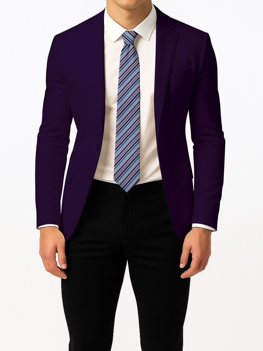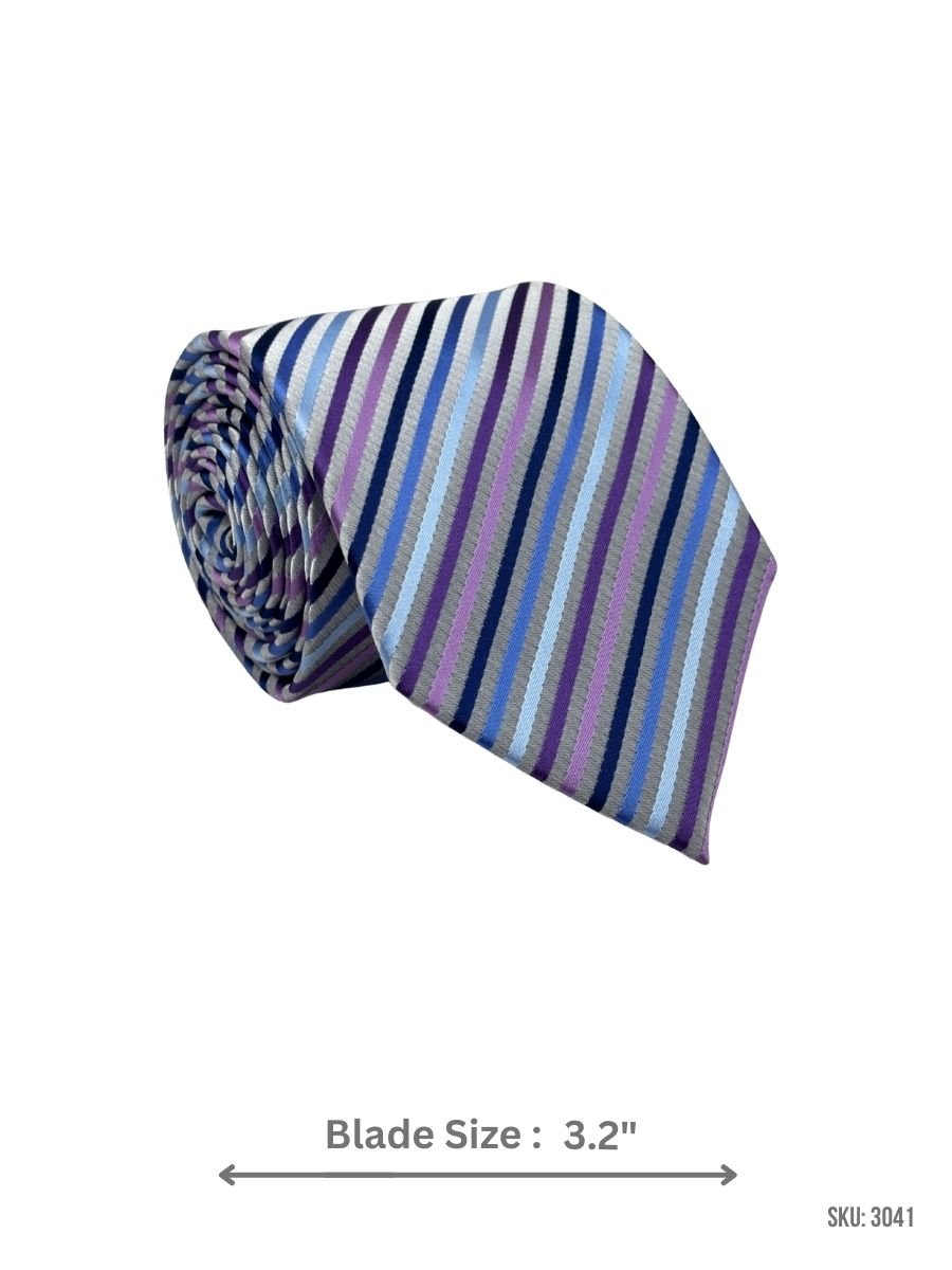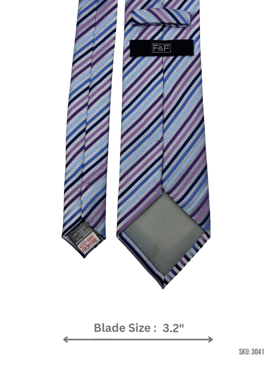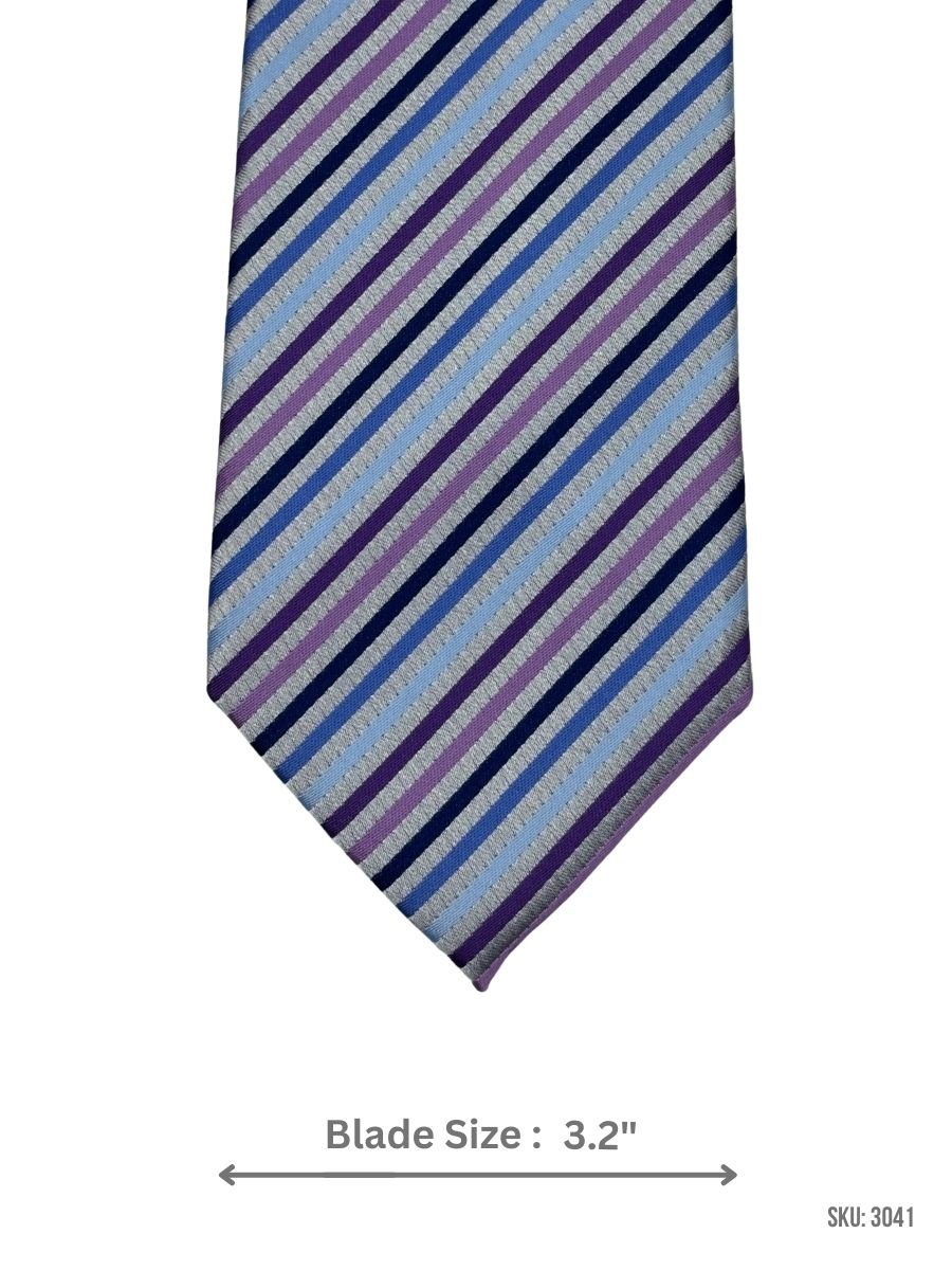 Brighten your formal outfit with this tie featuring blue and purple diagonal stripes. Perfect for weddings, parties, and office wear