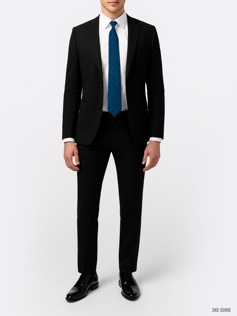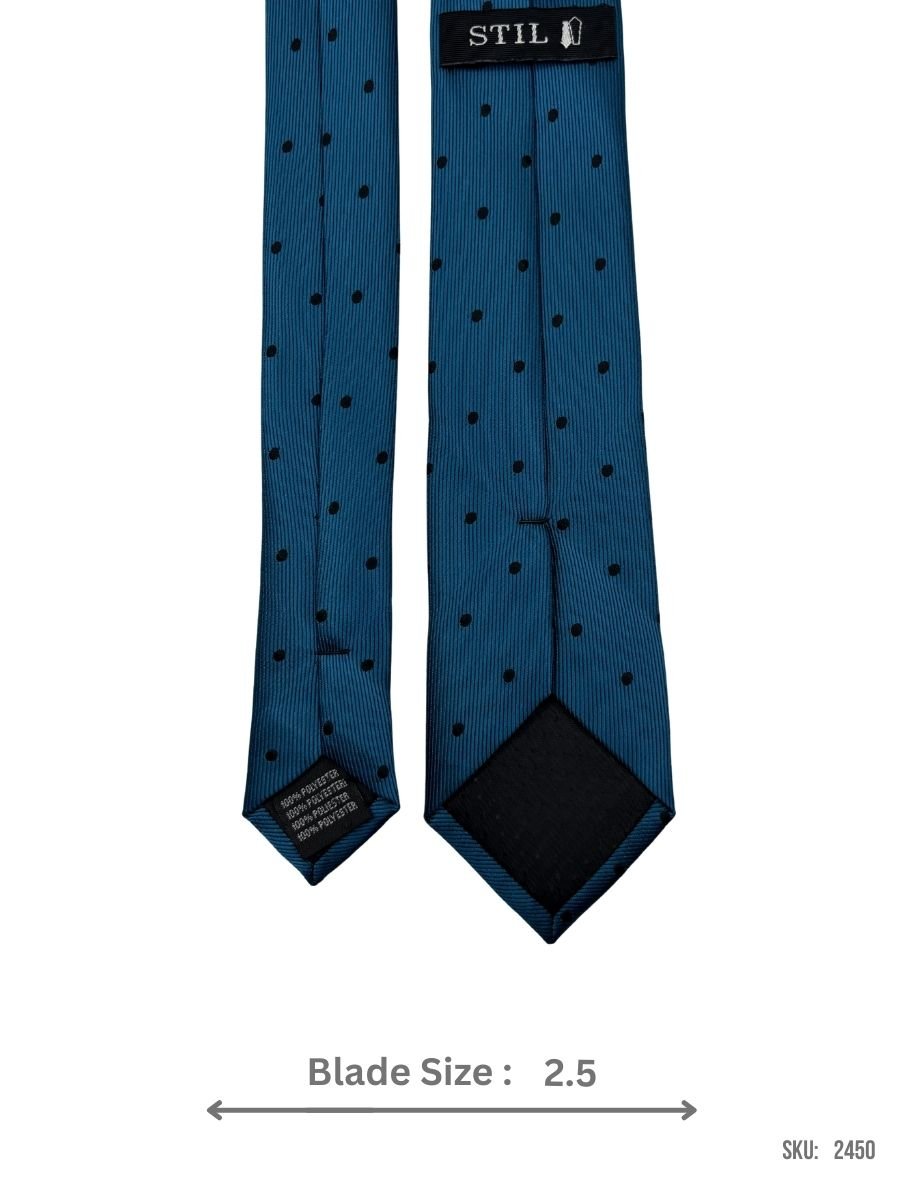 This blue tie with black polka dots provides a fun yet sophisticated look. Perfect for weddings, business meetings, or casual formal events, it adds a charming touch to your wardrobe.