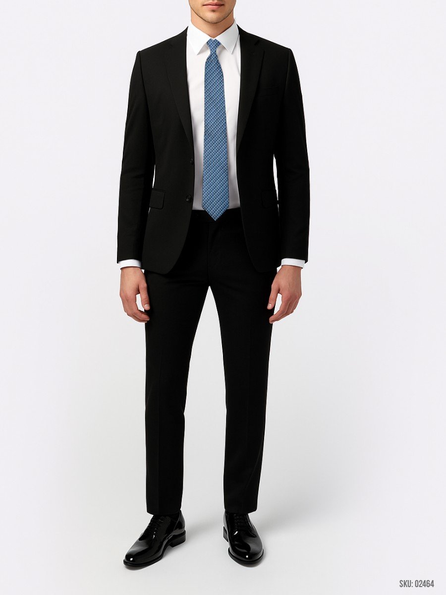 This blue tie is adorned with a diamond geometric pattern that adds texture and depth to your formal outfit. The design is both modern and classic, making it an essential for any professional wardrobe.