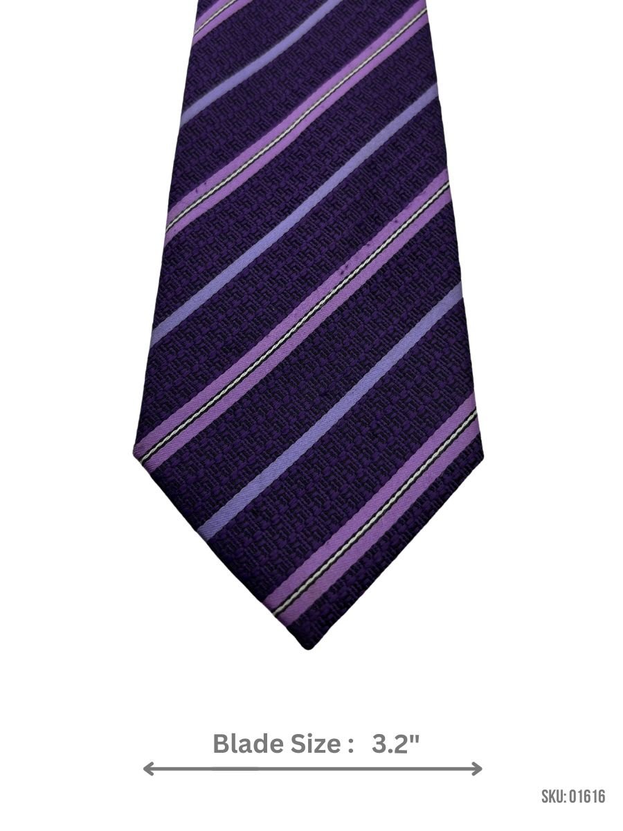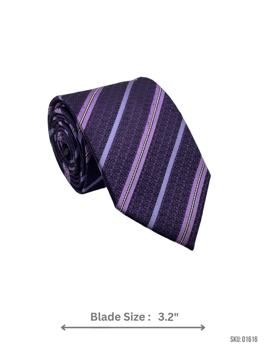 This purple striped tie blends contemporary design with timeless appeal. The 3.2-inch blade width and textured fabric make it a standout accessory for professional and formal events. Crafted with precision, it offers both durability and style.