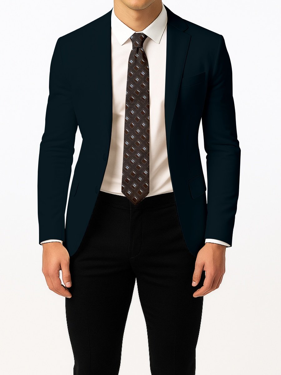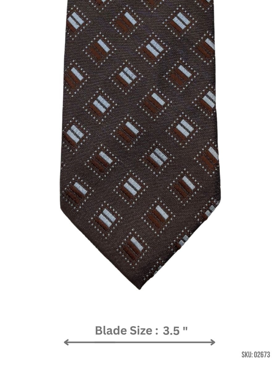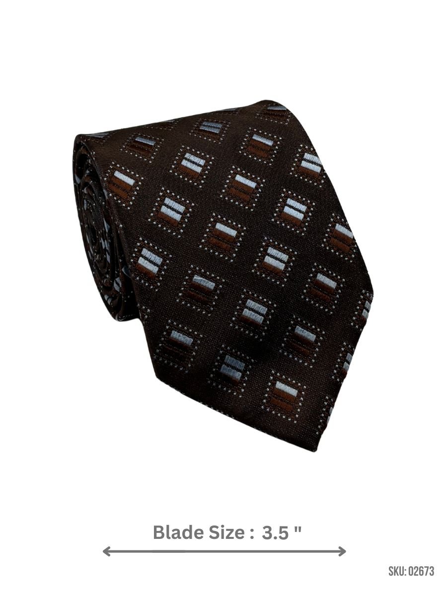 This brown tie features a distinctive geometric pattern, providing a contemporary yet classic look. Its versatile design makes it perfect for both business meetings and formal events, adding a refined touch to your appearance.
