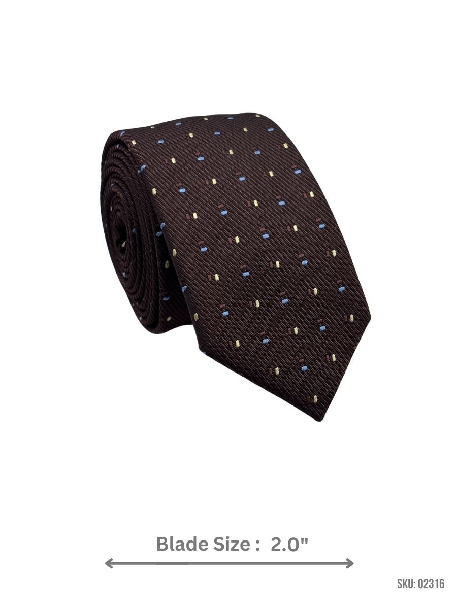 This brown tie features vibrant multicolored polka dots, adding a playful touch to a traditionally formal design. Whether you’re attending a wedding, business event, or social gathering, this tie balances fun and sophistication, making it a great addition to any wardrobe.