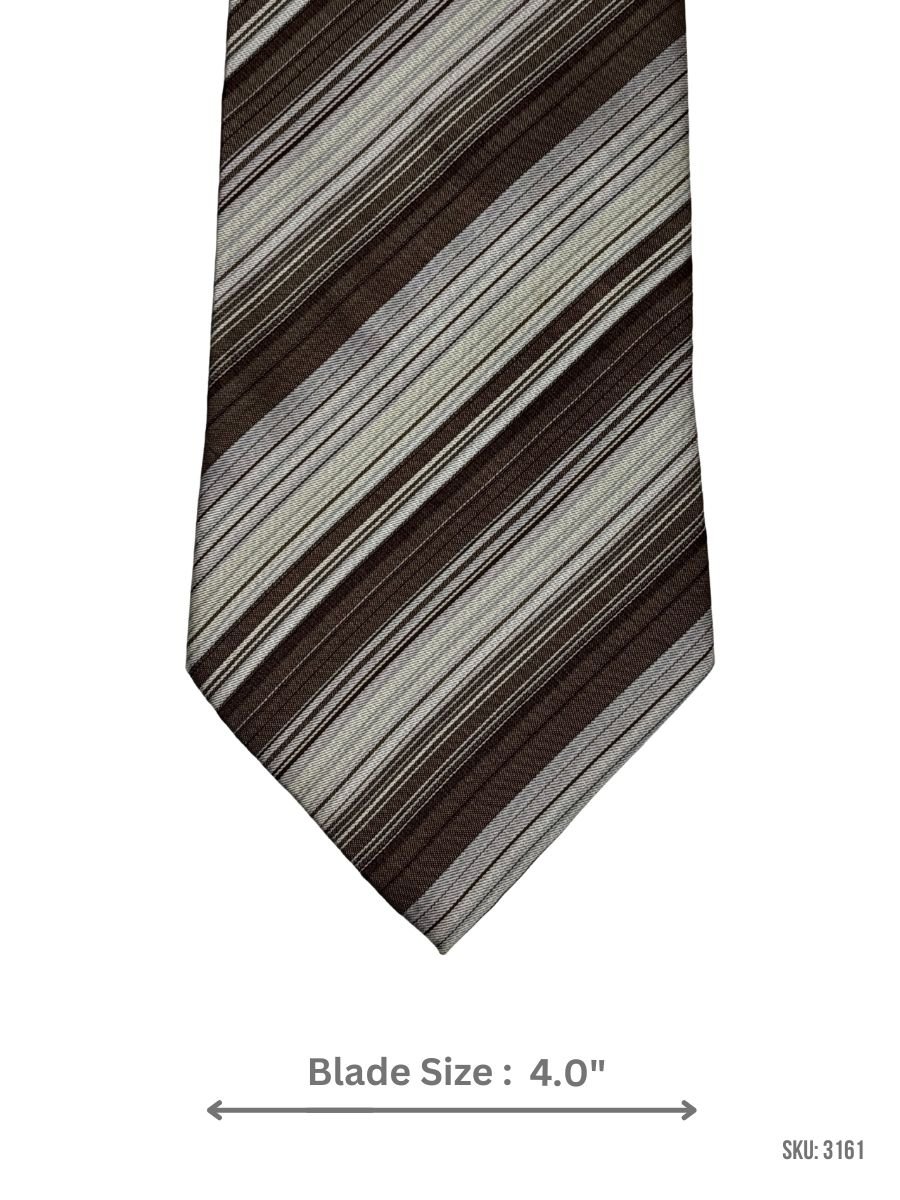 Brown Tie with Beige, Light Gray and White Diagonal Multi-Stripe Pattern