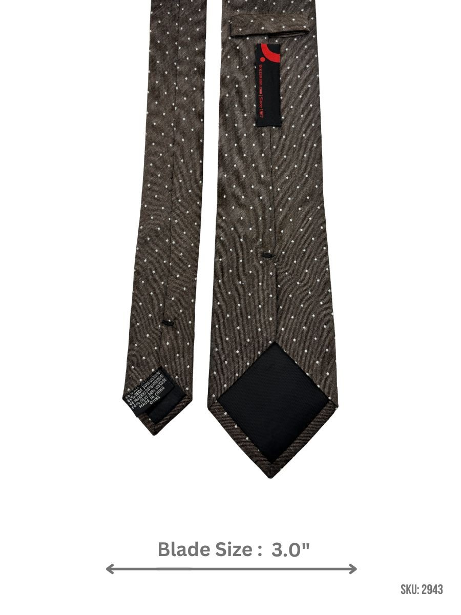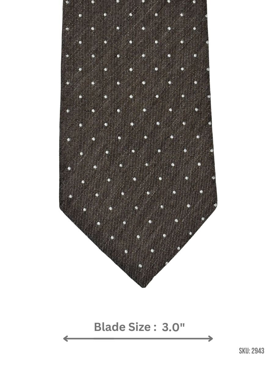 This brown tie is designed with a fine white micro‑dot pattern that adds subtle texture while maintaining a timeless, professional appearance.