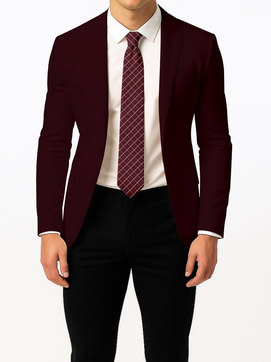 Make a statement with this burgundy tie featuring a crisp white grid pattern. Perfect for weddings, parties, and professional settings.