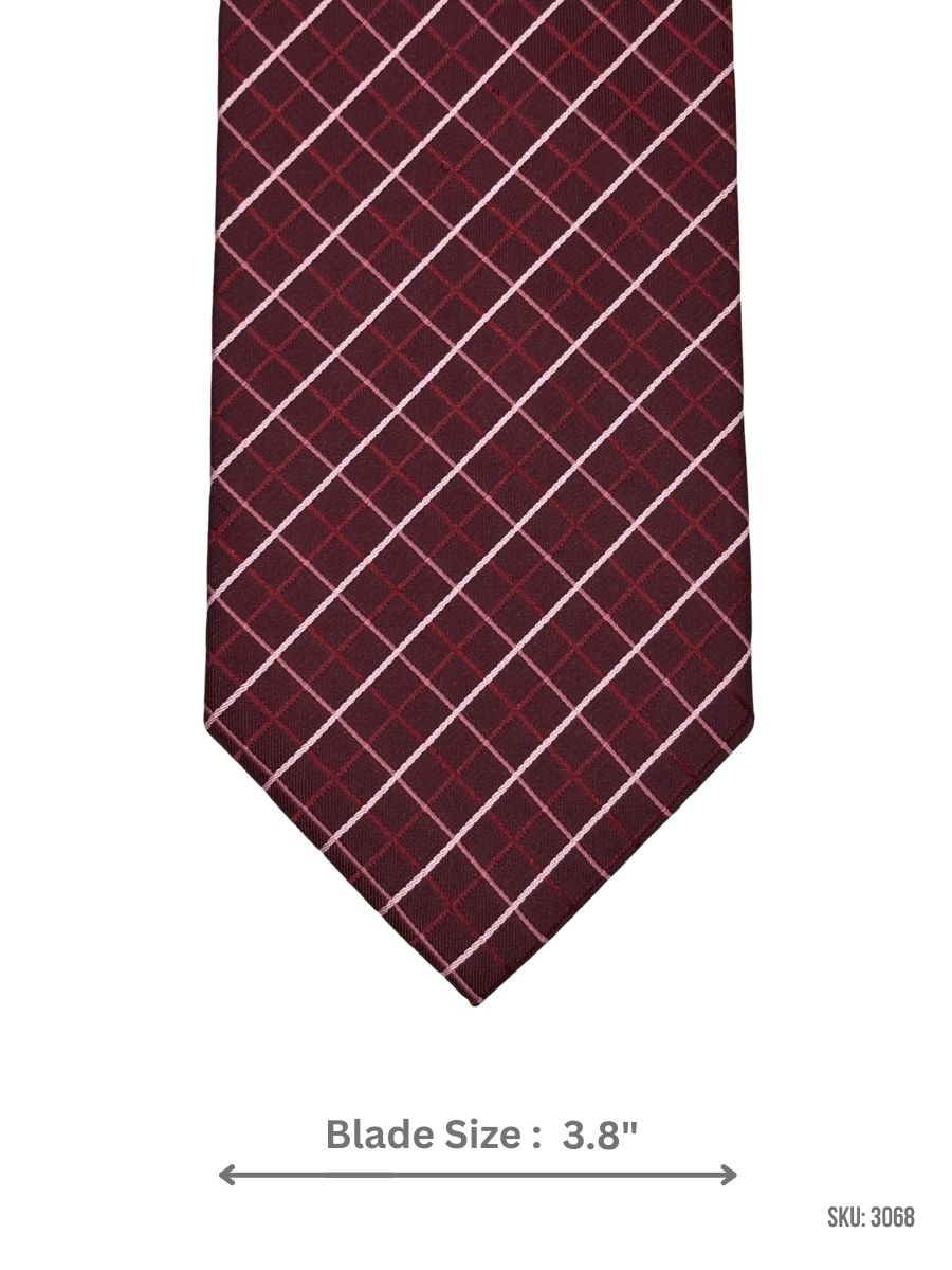 Burgundy Tie with White Grid Pattern