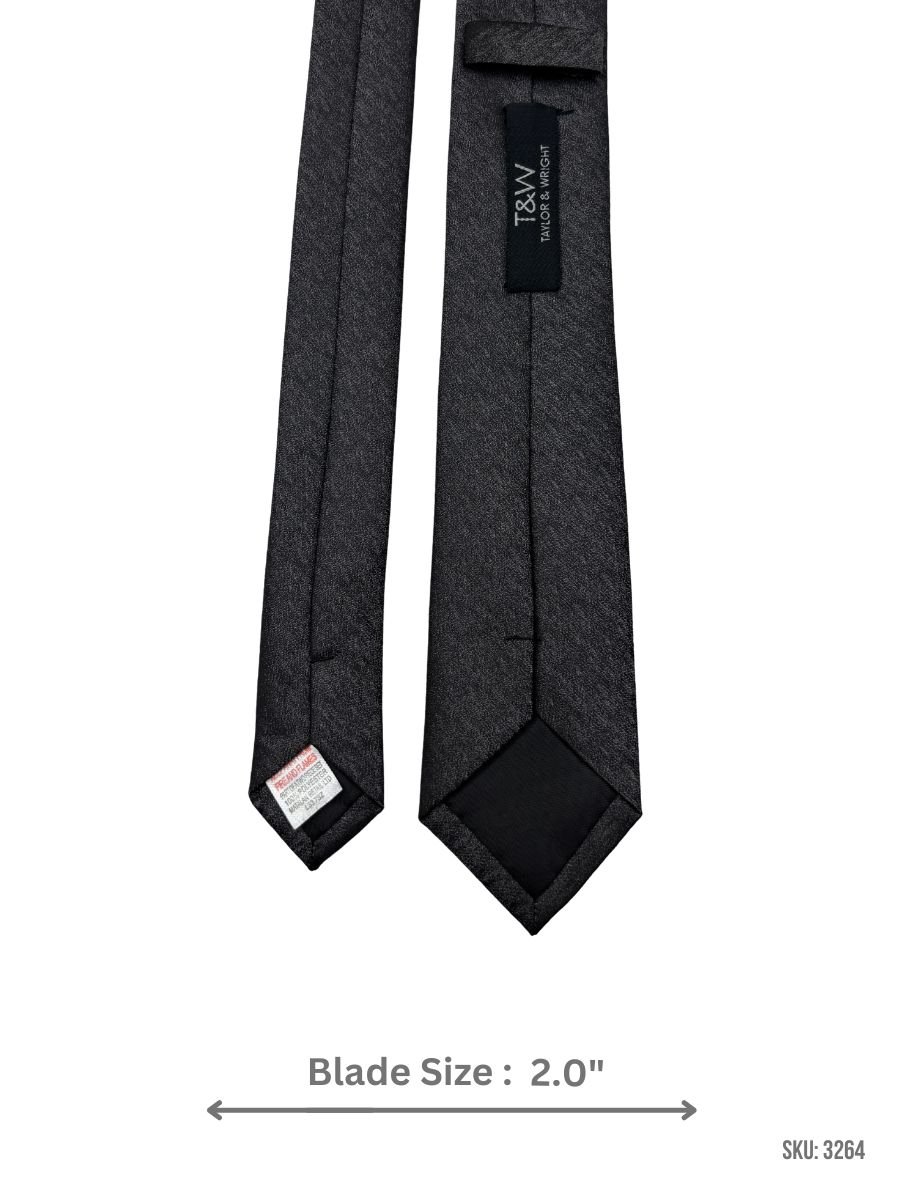 A classic charcoal gray tie with a soft self-textured weave that gives your outfit a polished touch while keeping the look understated. Great for business wear, formal events, and daily professional styling. Blade size: 2.0″.