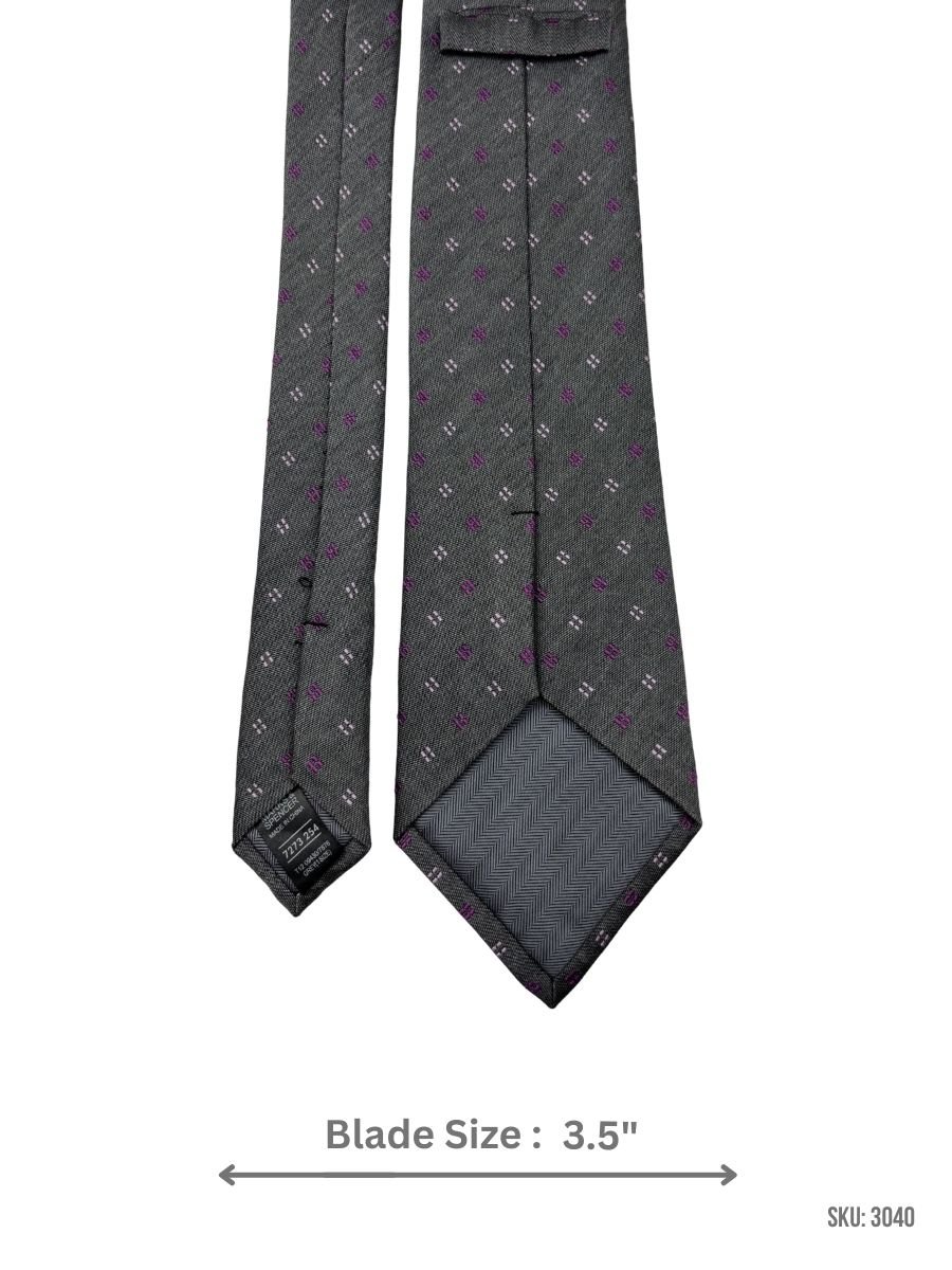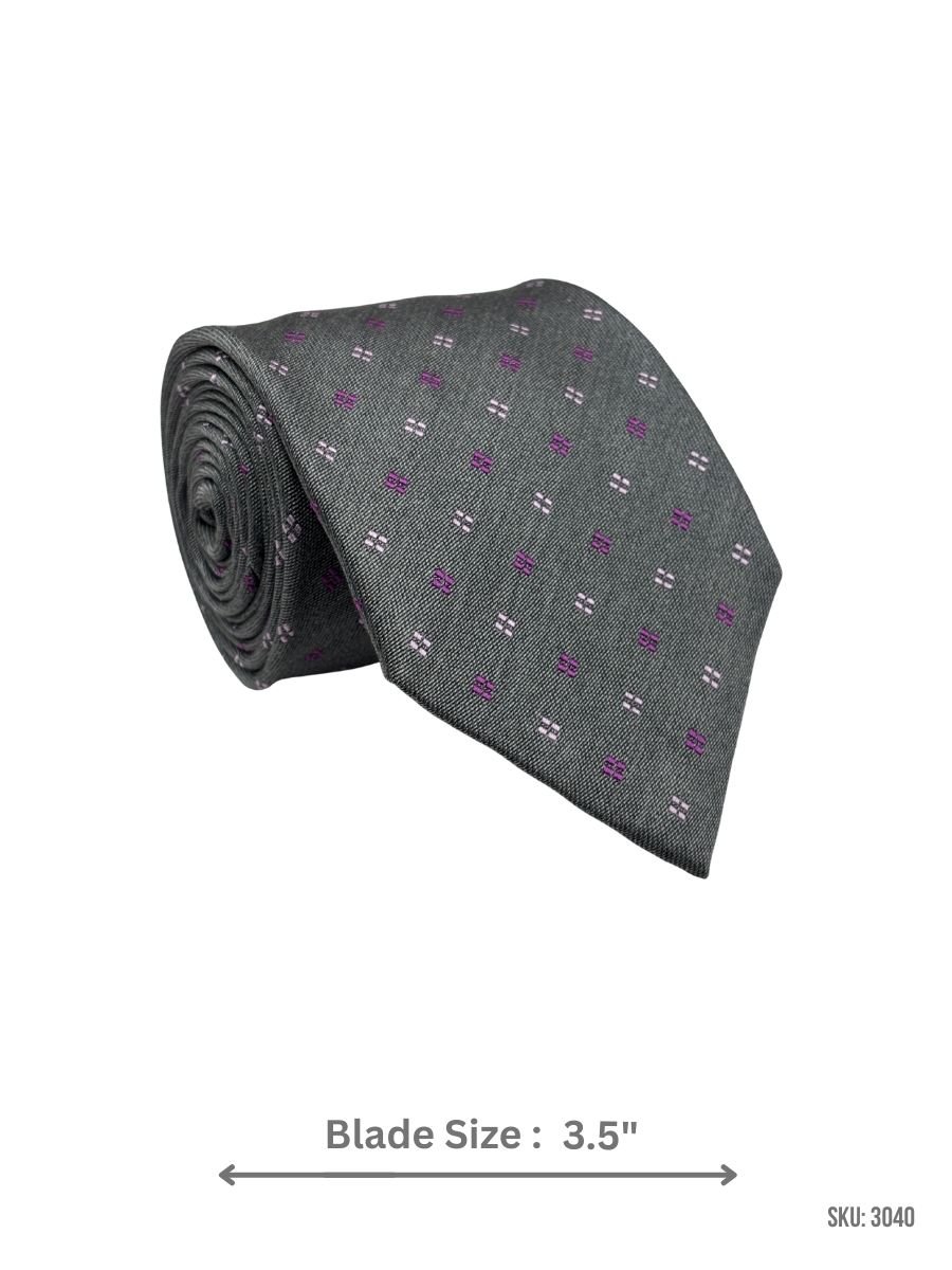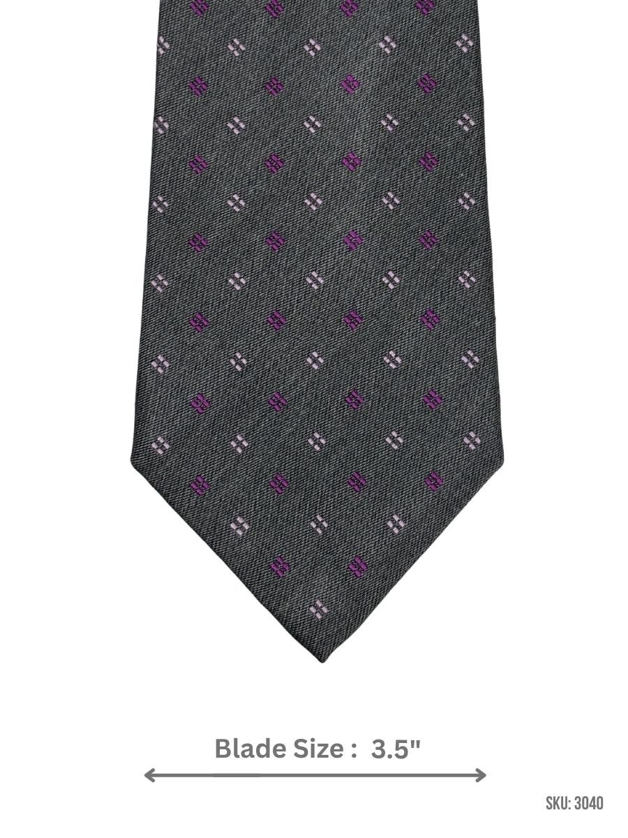 Elevate your style with this charcoal gray tie adorned with subtle purple micro dots. Perfect for office wear, weddings, and formal occasions.