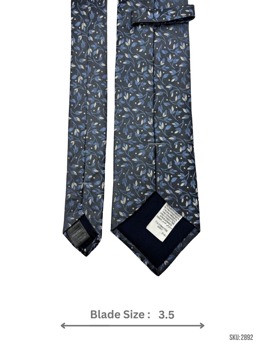 Charcoal Grey Tie with Blue & White Floral Leaf Pattern