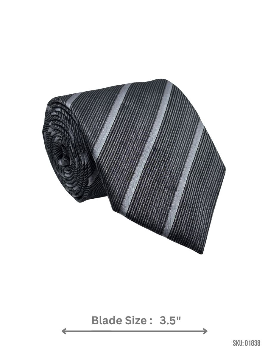 Achieve a timeless look with this gray tie, highlighted by subtle diagonal stripes. At a 3.5-inch width, it strikes the perfect balance between contemporary and classic.