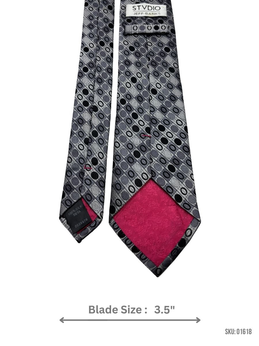 This grey tie with a geometric circle pattern strikes a balance between contemporary and classic. Its 3.5-inch blade width makes it a versatile accessory for business meetings or formal occasions. Made with high-quality materials, it ensures durability and an elegant finish.