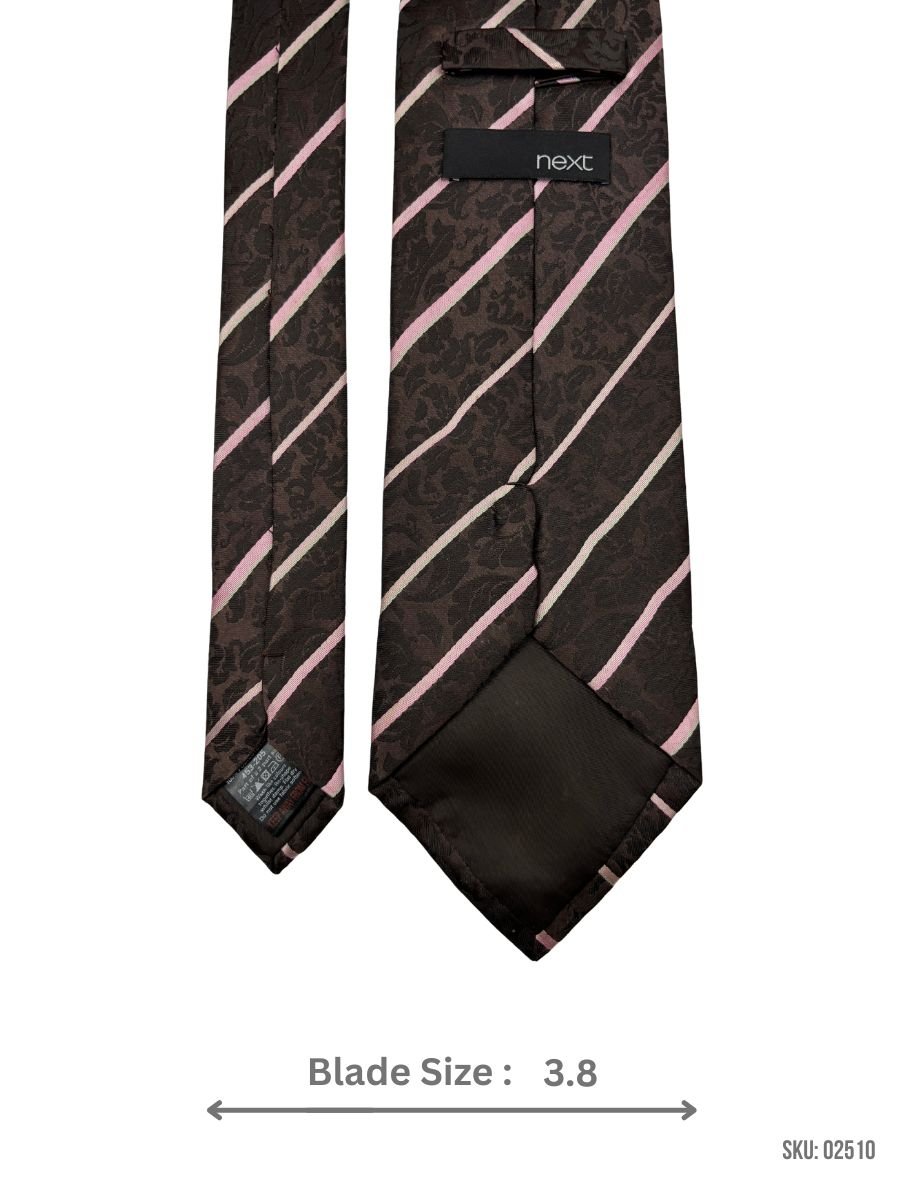This dark brown tie is adorned with delicate pink and green diagonal stripes, offering a stylish and unique twist on a classic design. The contrast in colors adds a vibrant yet sophisticated touch, making it suitable for both formal and semi-formal occasions. Whether you’re at a business meeting or a semi-casual dinner, this tie will elevate your look effortlessly.