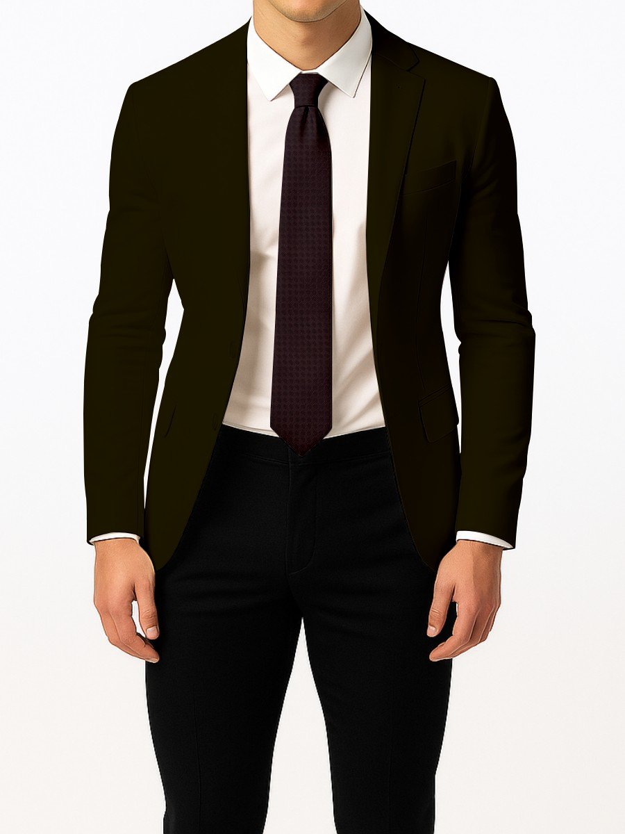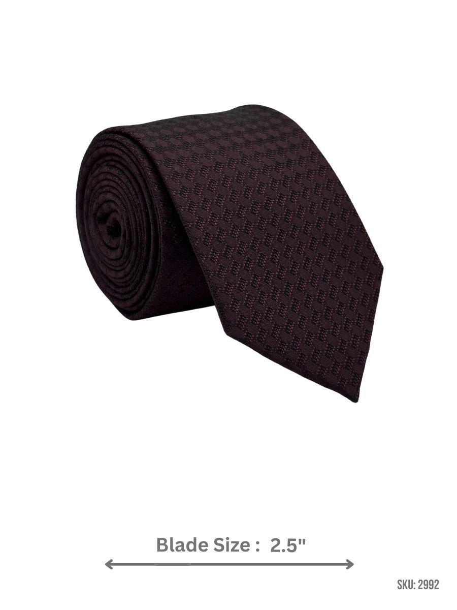This dark brown tie is finished with a refined geometric micro pattern that adds depth and texture while keeping the look understated. A versatile choice for business and evening wear, it pairs best with solid shirts and suits in black, charcoal, or navy for a clean, polished finish.