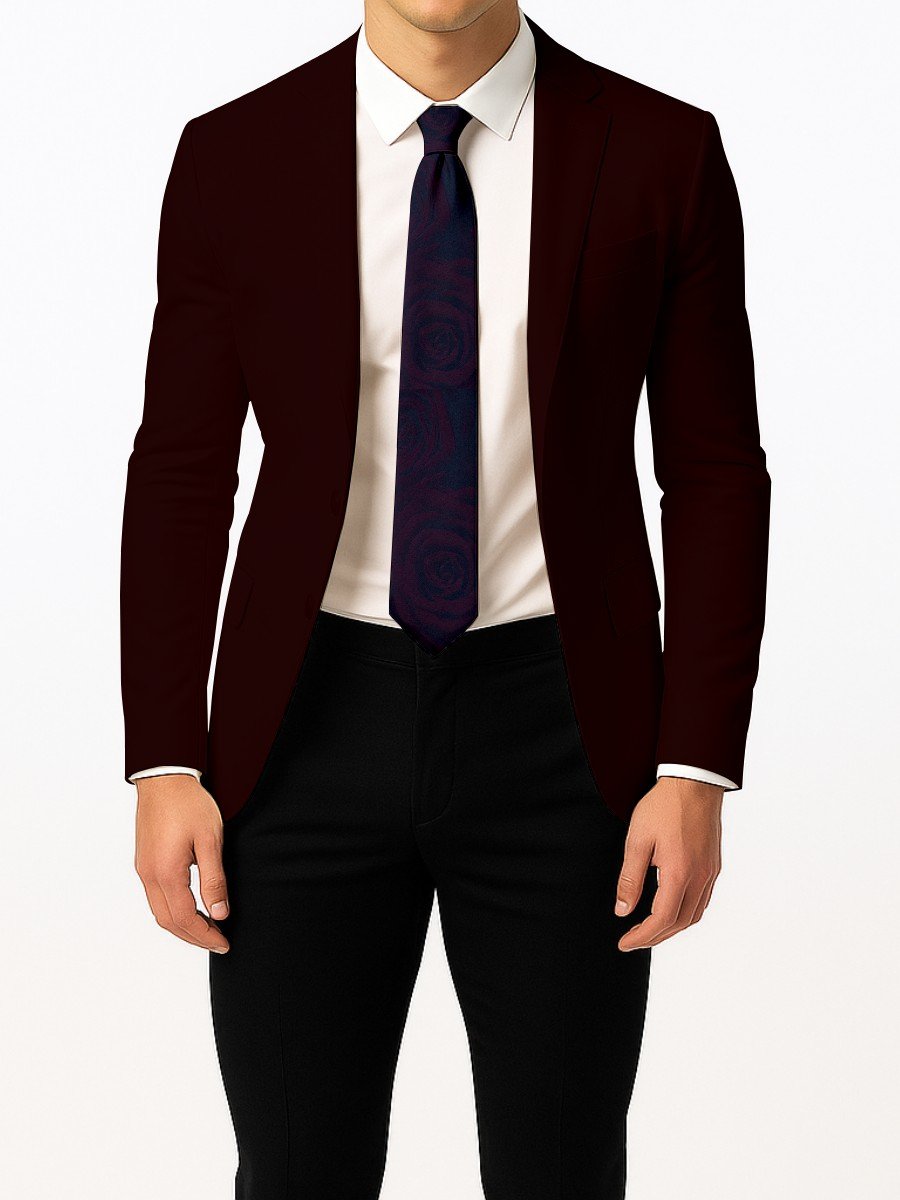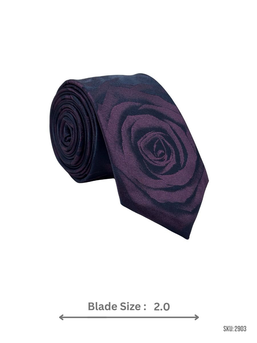 This tie combines deep purple tones with a woven rose motif, creating an elegant and expressive formal accessory.
