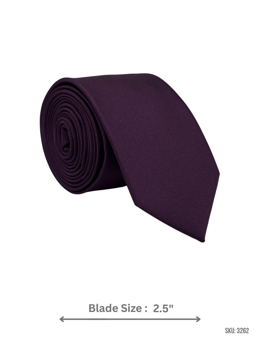 A classic deep purple tie finished with a fine self-textured weave that adds elegance while keeping the design minimal. Ideal for office styling, events, and formal suits. Blade size: 2.5″.