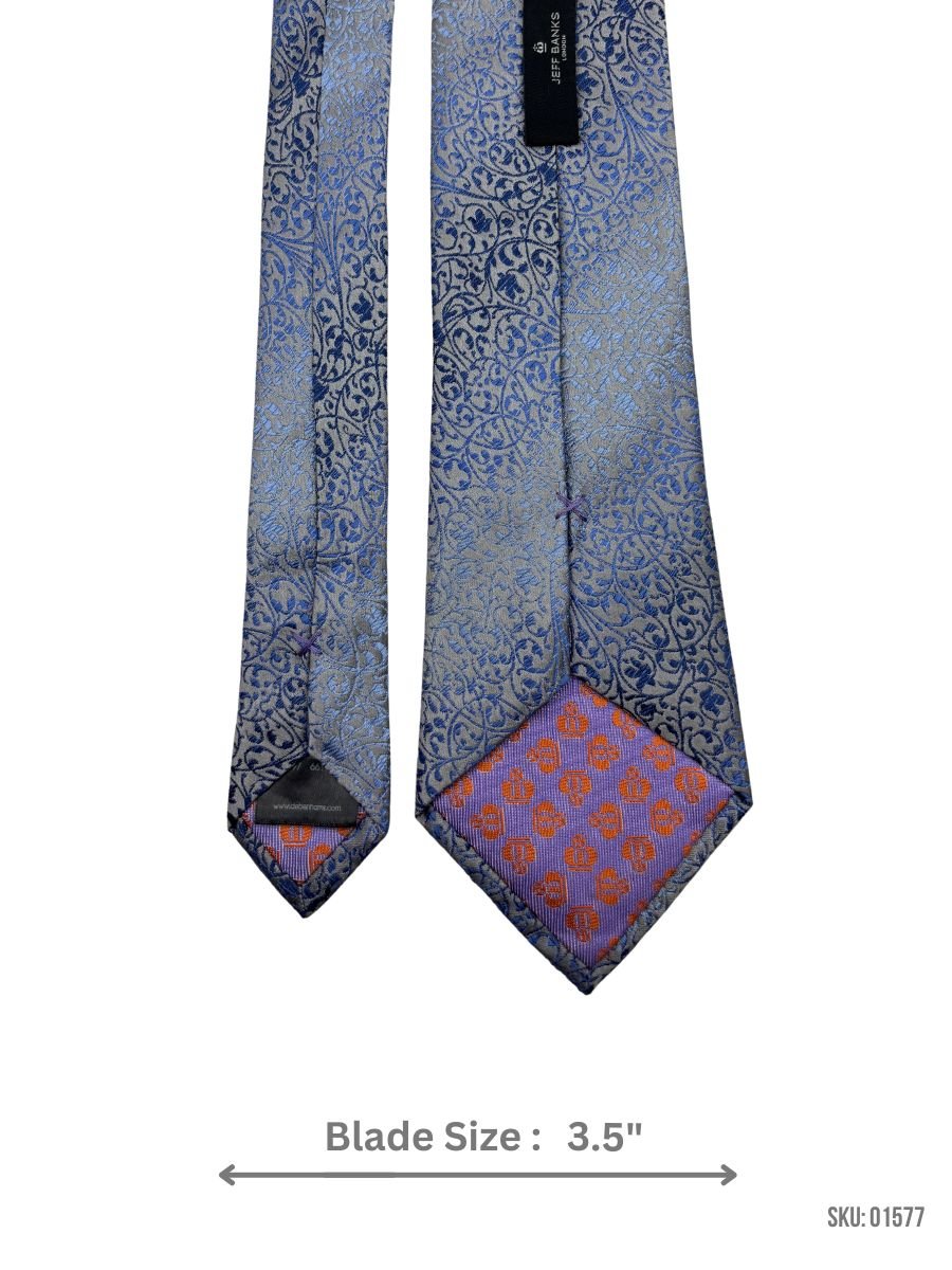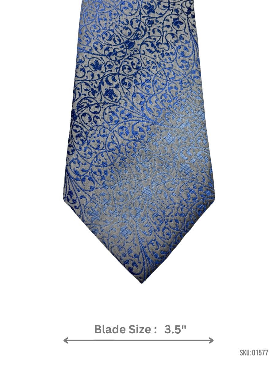 Elevate your wardrobe with this elegant silk tie featuring an intricate blue and silver ornamental design. With a 3.5″ blade, it offers a bold statement for formal occasions, business meetings, or celebrations. The premium silk fabric ensures a luxurious feel and impeccable style.