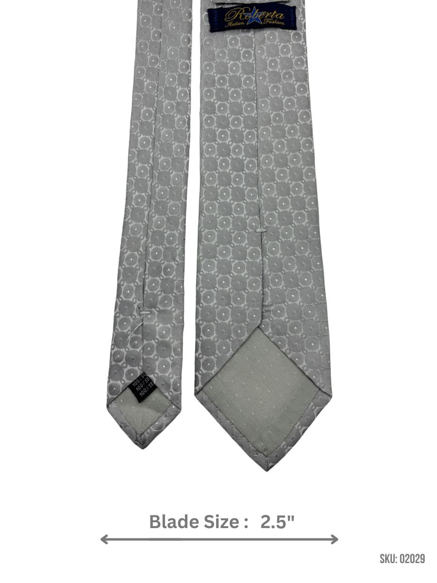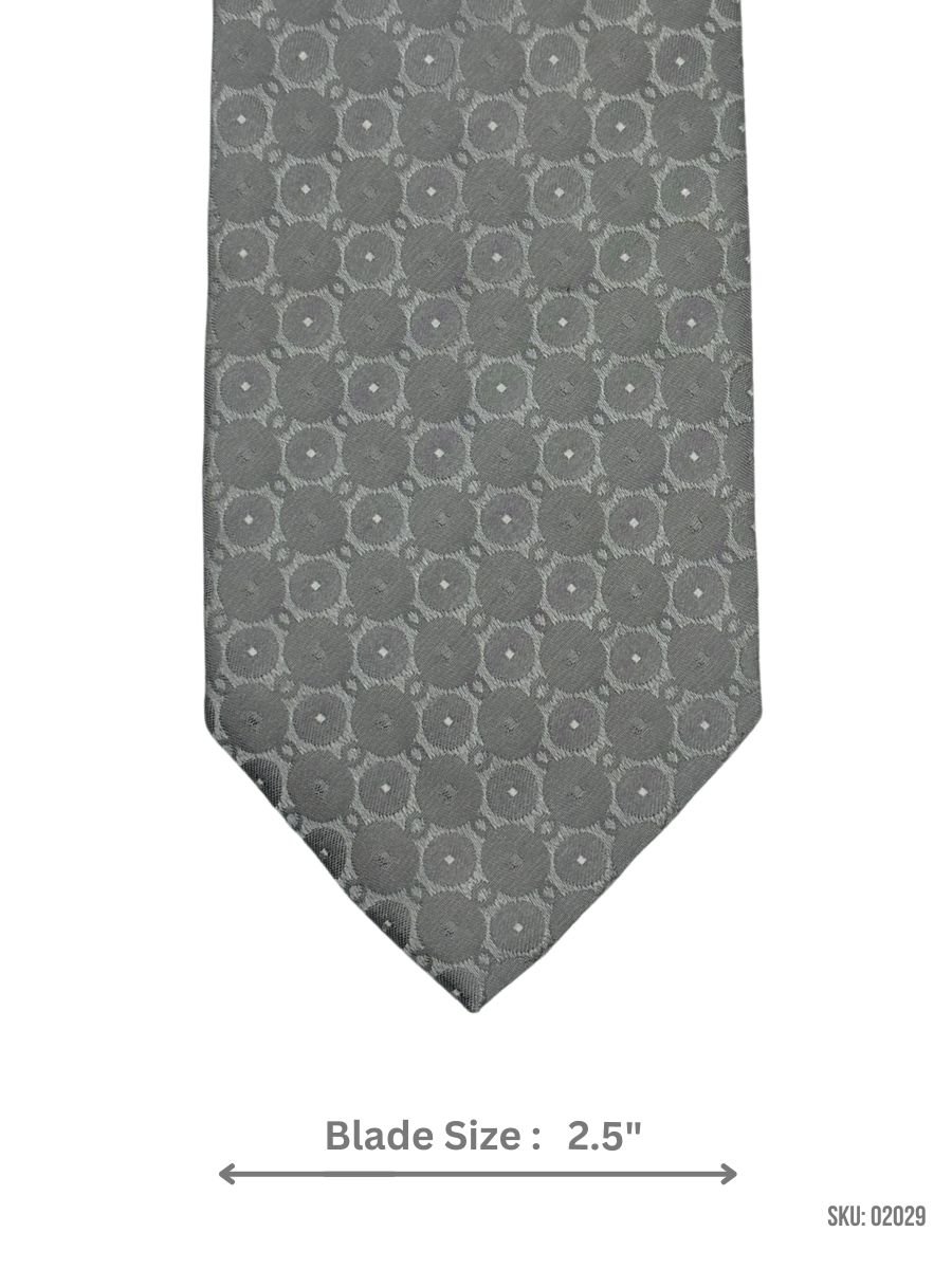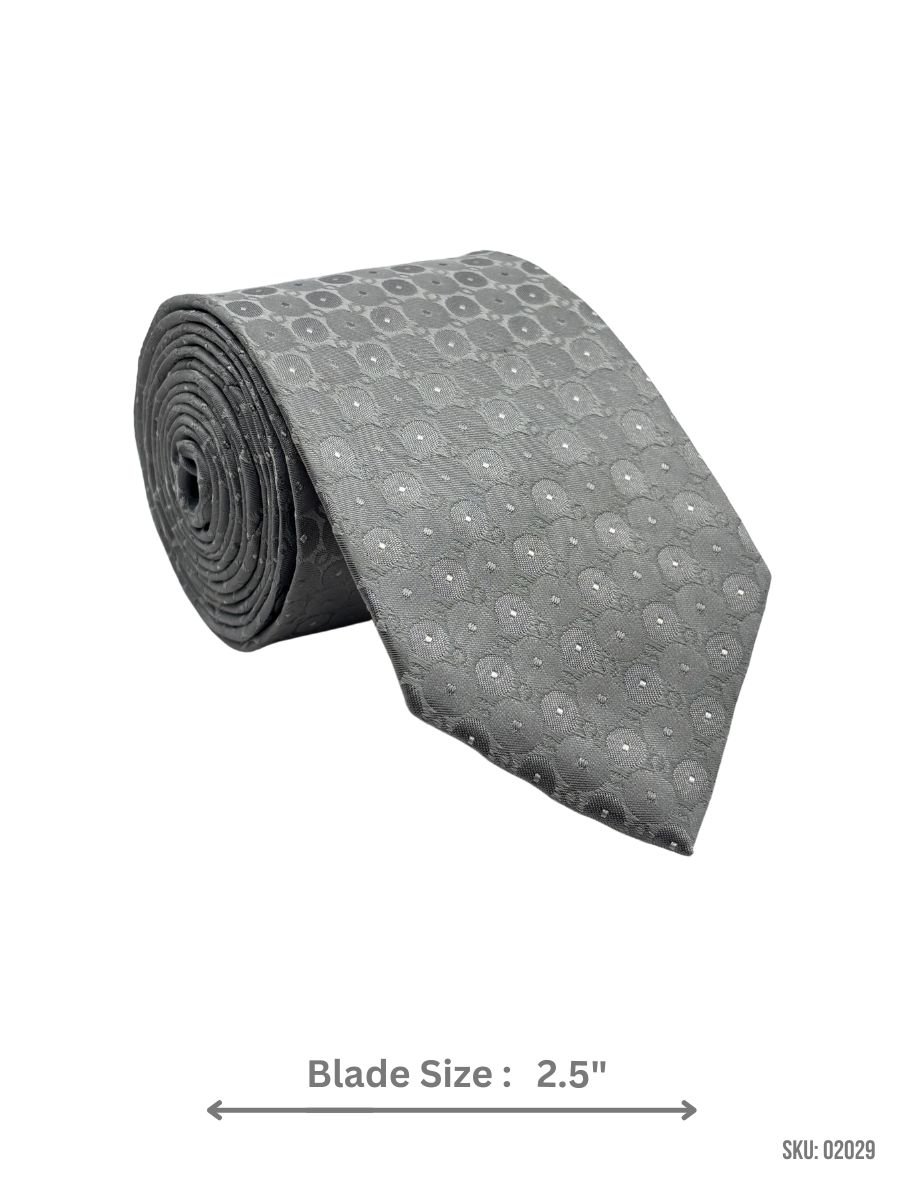This gray tie with an intricate circular pattern is perfect for modern professionals. Its subtle design complements any suit, making it suitable for both business and formal occasions. Crafted from premium fabric, it ensures comfort and durability.