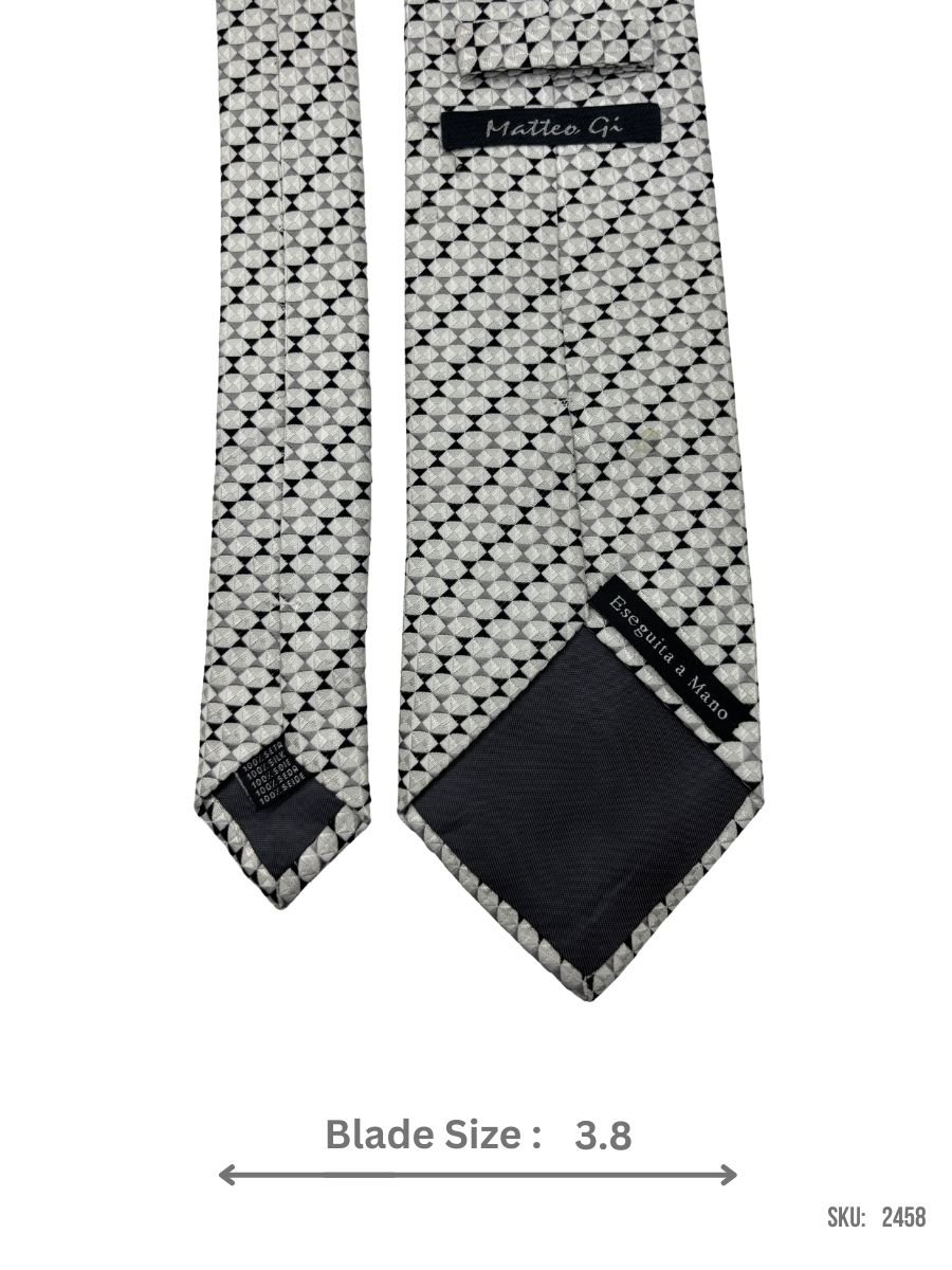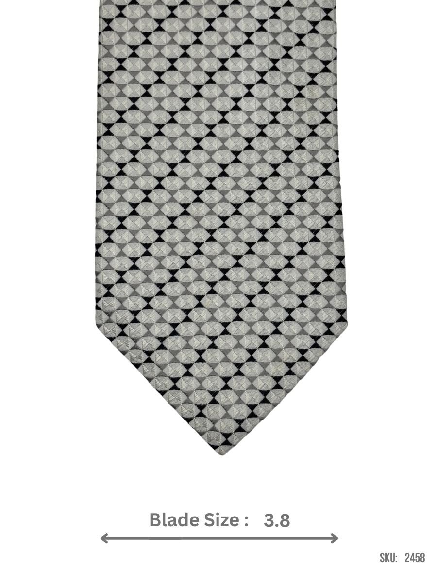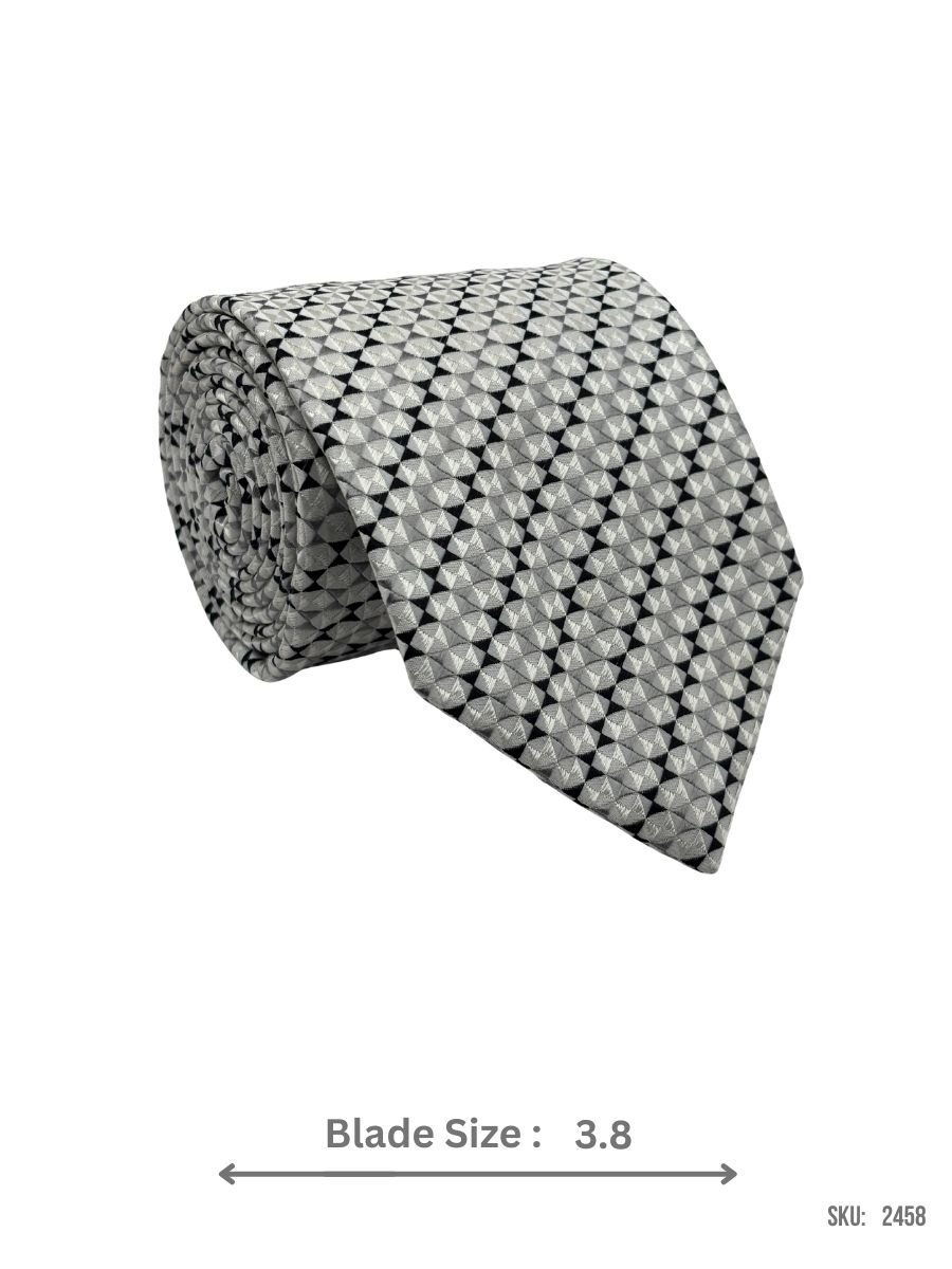 Featuring a sleek geometric pattern in grey, this tie offers a modern and stylish touch to any formal outfit. Its versatile design makes it perfect for professional and semi-formal events.