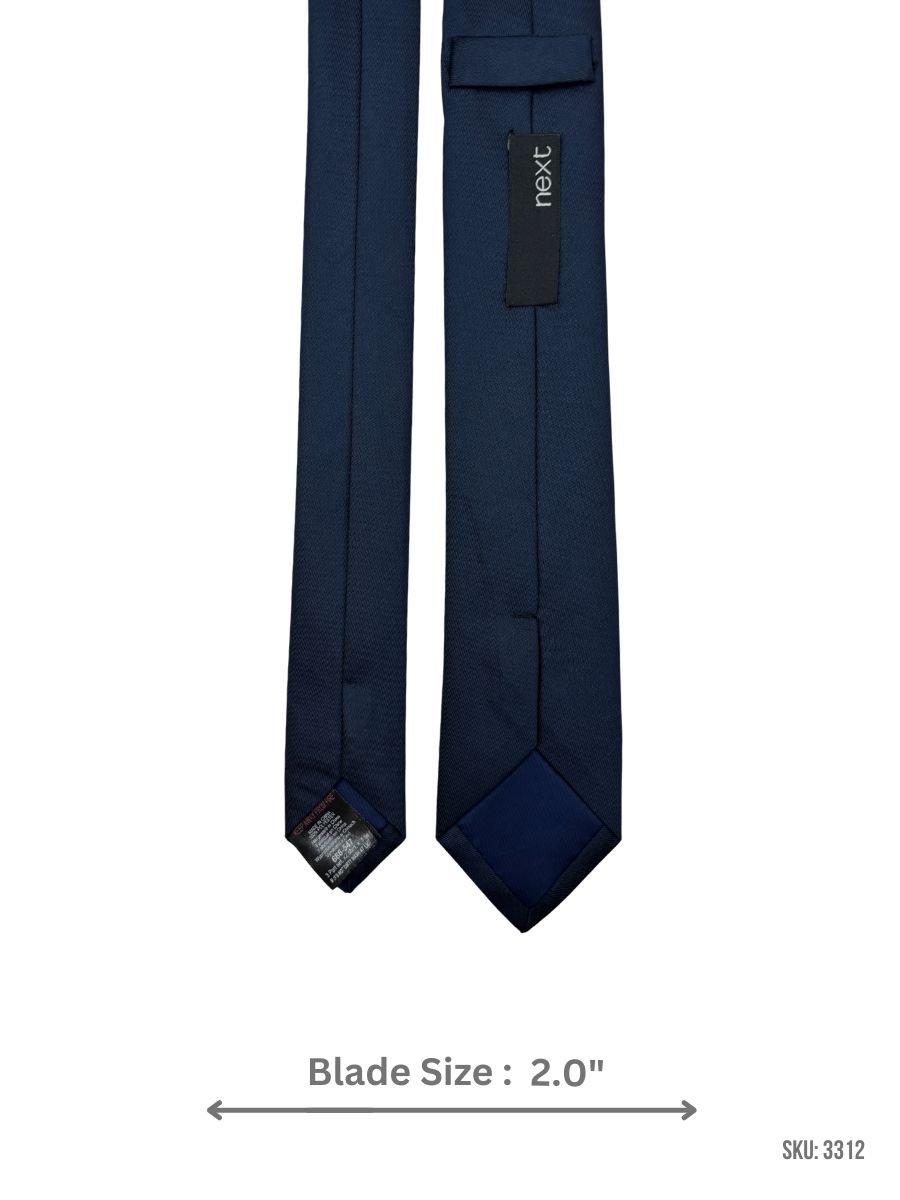 A sleek ink navy tie featuring a solid fine woven texture for a clean and versatile formal look. Ideal for office wear, meetings, and special occasions.