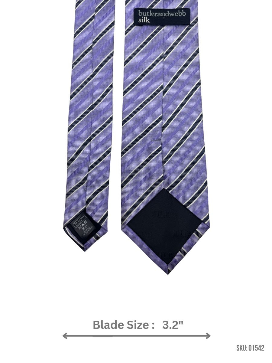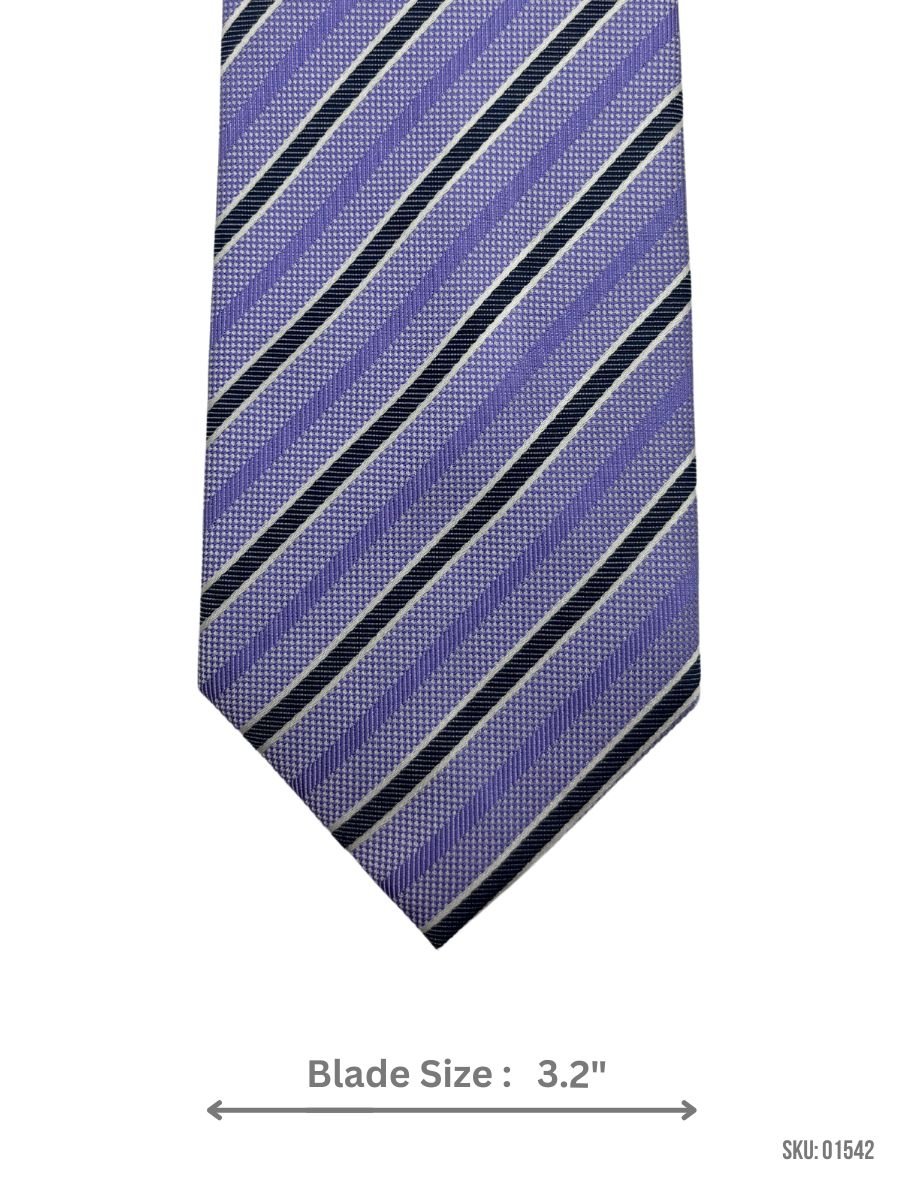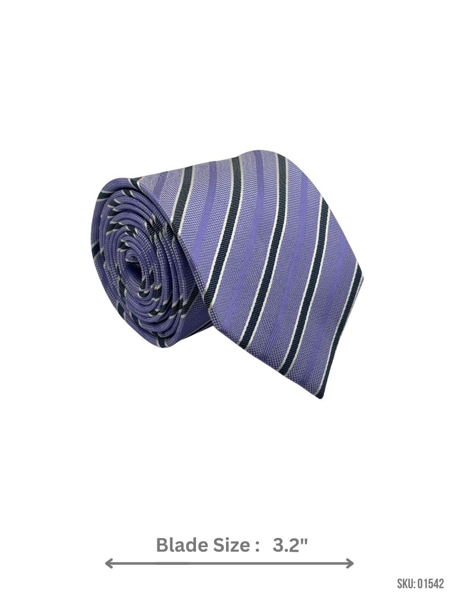 Add a pop of color to your outfit with this lavender tie, highlighted with black and white stripes. Its 3.2-inch blade width and premium-quality fabric make it a versatile accessory for weddings, business meetings, and parties. This tie offers both sophistication and charm.