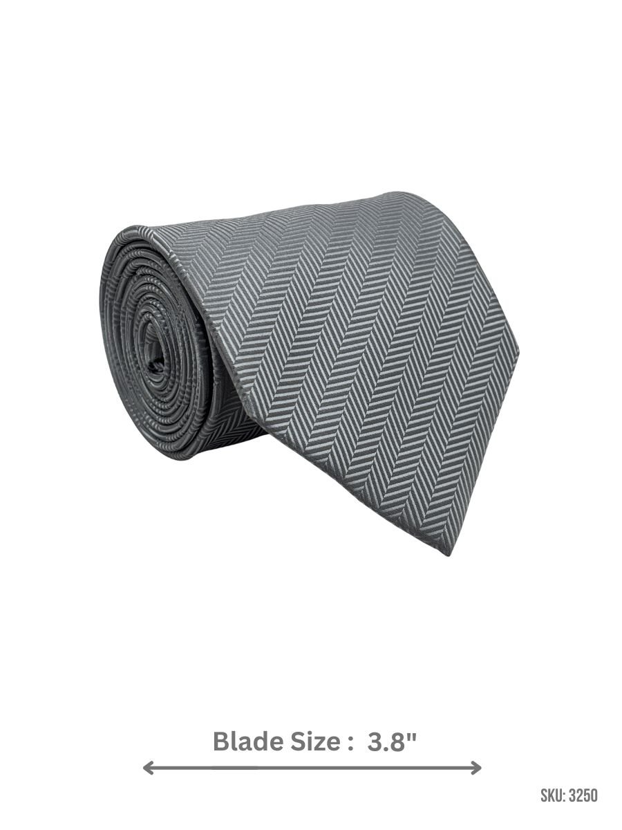 A sleek light gray tie featuring a subtle herringbone chevron weave that adds depth while staying minimal. Perfect for office wear, meetings, and formal occasions.