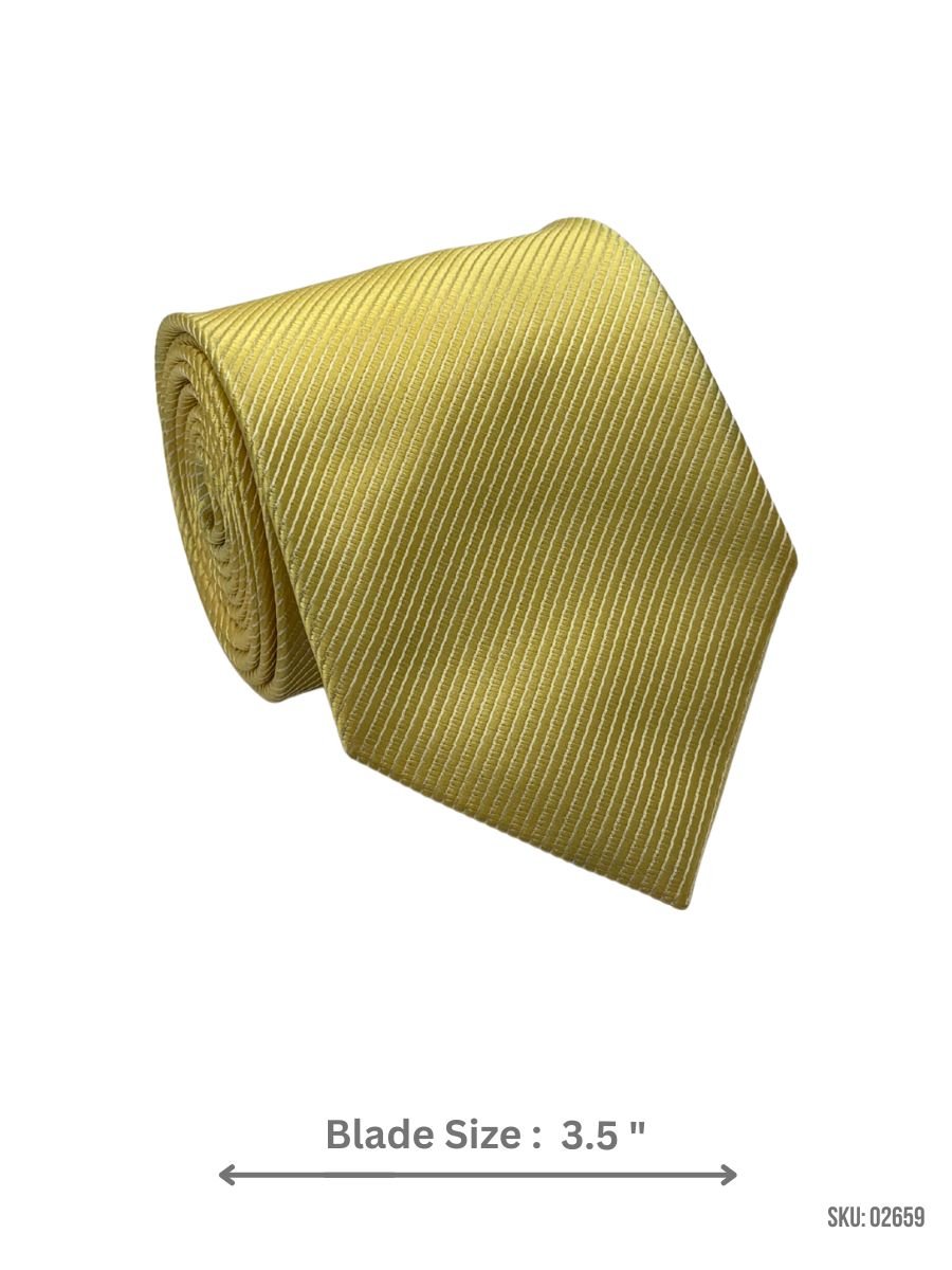 This elegant light yellow tie with a subtle textured pattern adds a sophisticated and fresh touch to your business or formal attire.