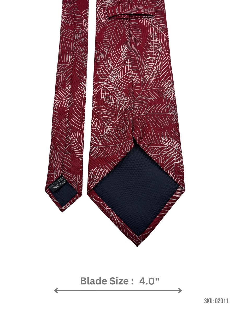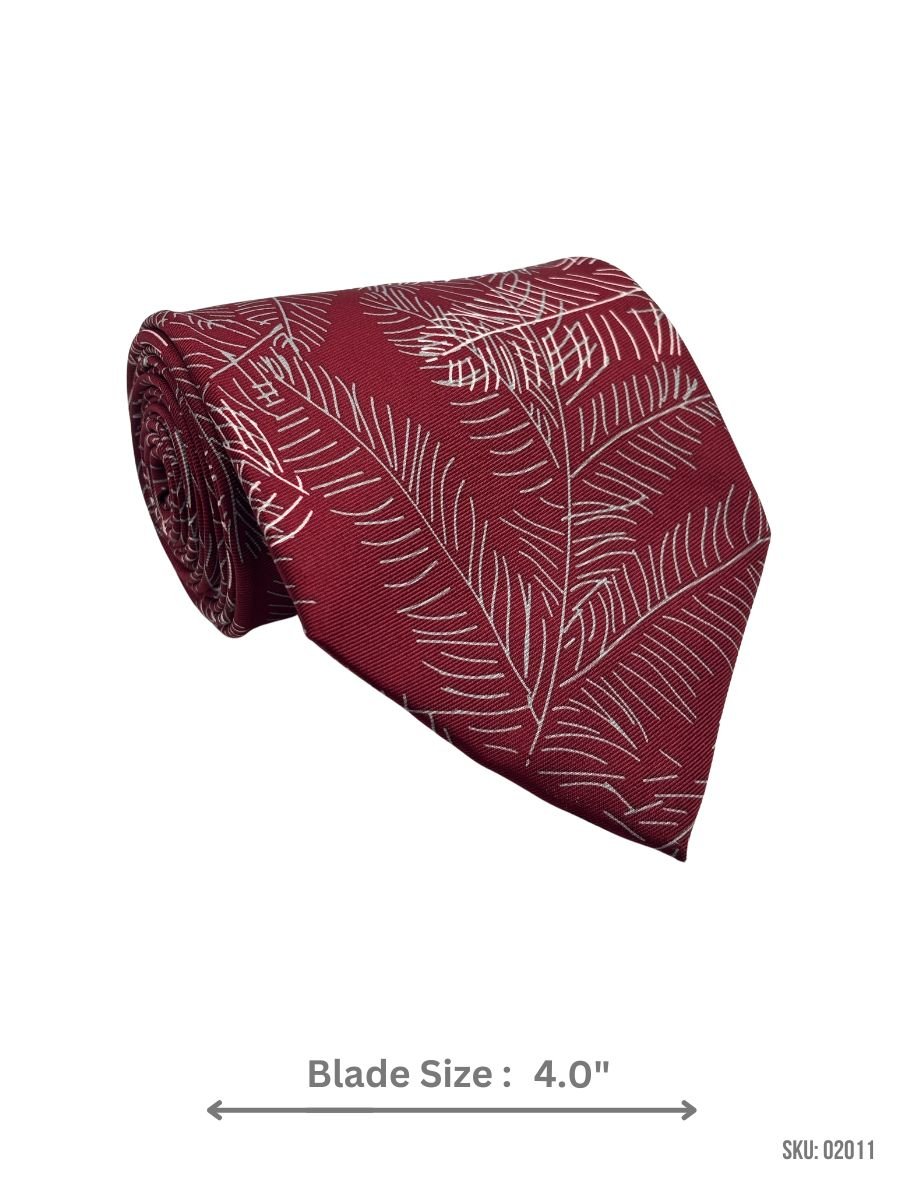 This maroon tie features a striking white leaf design, blending contemporary style with natural elegance. Perfect for formal and semi-formal occasions, this tie adds a unique touch to your outfit. Crafted with care for a premium feel and lasting quality.